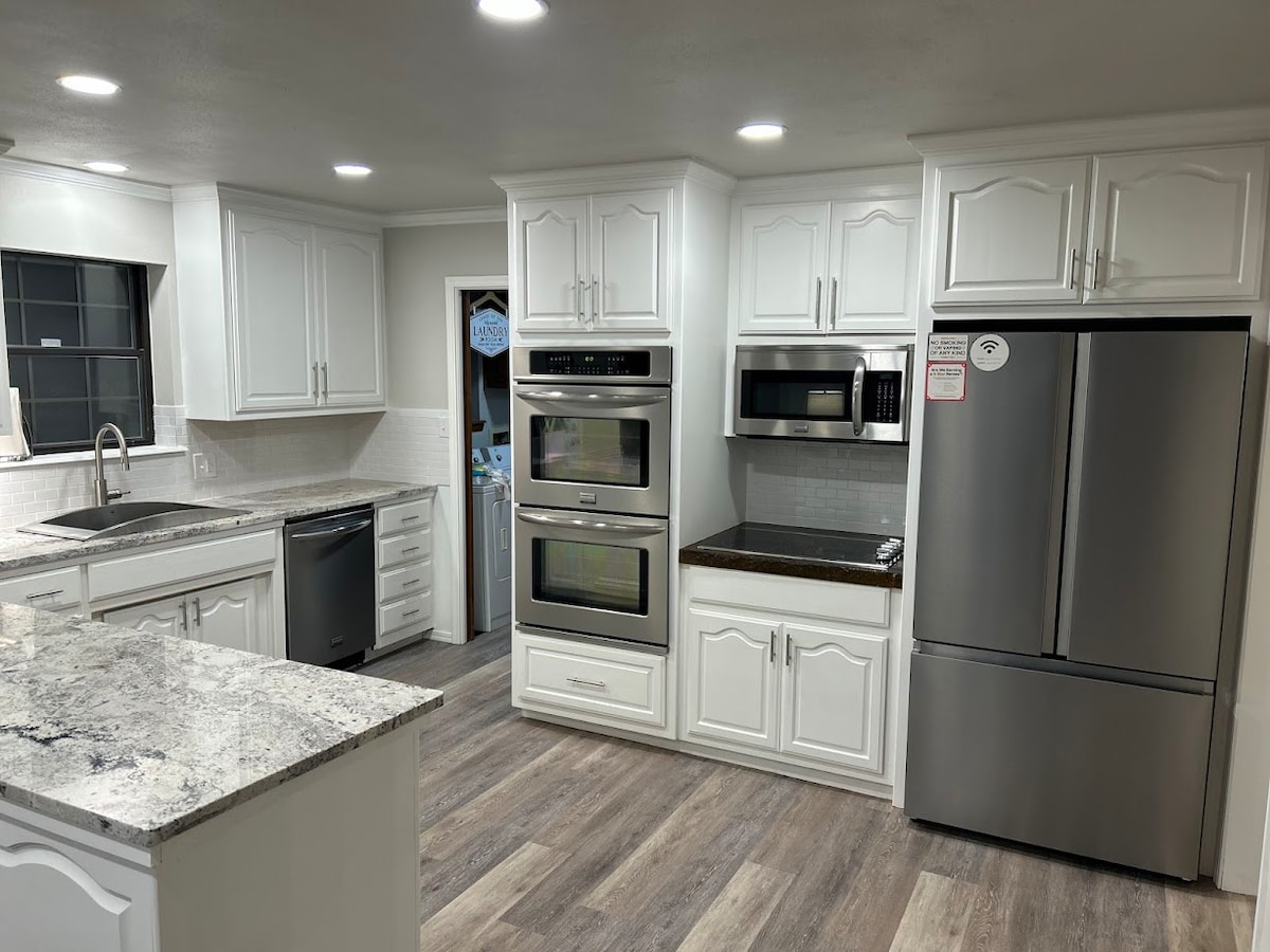 Всего около часа N of Tulsa, хорошо, этот уютный дом расположен всего в миле от центра Бартлсвилла и Общественного центра и в 30 минутах от Pawhuska, где расположен The Pioneer Women Mercantile. OKWU тоже прямо за углом. Окруженный несколькими озерами в 30 милях, эта очаровательная кухня 2BR 1BA, стиральная машина с стиральной машиной и сушилкой, принимает домашних животных с полностью огороженным задним двором. Отлично подходит для романтических каникул, идеального отпуска с этим особенным человеком или для создания семейных воспоминаний.