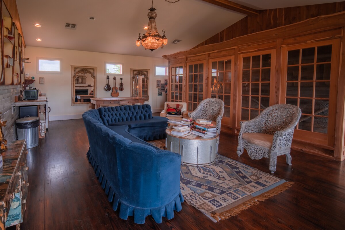 Отдельный роскошный люкс в 10 минутах езды от Раунд-Топ, штат Техас. Наслаждайтесь потоком естественного света, захватывающими видами и тишиной и покоем в этом эклектичном месте, спроектированном с учетом комфорта гостей. Этот отдельный люкс предлагает гостям расслабляющий отдых в деревне, вдали от стрессового движения и дымных горизонтов. Проведите ночи, обнимаясь у костра, и послушайте, как койоты воют, глядя на наполненное бриллиантами небо. Остановитесь на некоторое время и узнайте, что значит жить сельской жизнью.