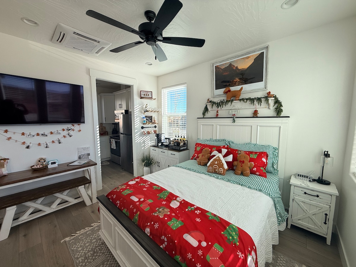Насладитесь отдыхом в национальный парк Сион, озеро Сэнд-Холлоу, Сноу-Каньон, Брайс-Каньон, Гранд-Каньон, озеро Пауэлл, Хорсшу-Бенд, Долина памятников, арки или Туакан. В этом уютном жилье есть двуспальная кровать размера Queen size, диван в гостиной и матрас размера Queen size. Прямо с шоссе и рядом с магазинами. Отличное убежище в этом милом домике с одной спальней, полностью в вашем распоряжении, с собственной подъездной дорогой и самостоятельным заселением.