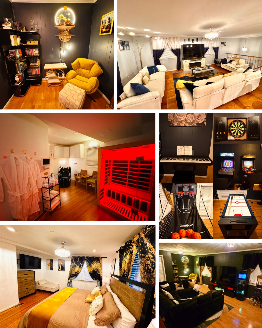 Идеально подходит для семей или групп, этот просторный дом с 5 спальнями и 4,5 ванными комнатами предлагает комфорт, удобство и роскошь. Отдохните в частной сауне, расположенной в главном люксе, насладитесь молниеносным Wi-Fi и воспользуйтесь просторной парковкой. В вашем распоряжении несколько гостиных, полностью оборудованная кухня и современные удобства. Этот дом идеально подходит как для коротких поездок, так и для длительного проживания. Независимо от того, хотите ли вы расслабиться или исследовать окрестности, вы почувствуете себя как дома.