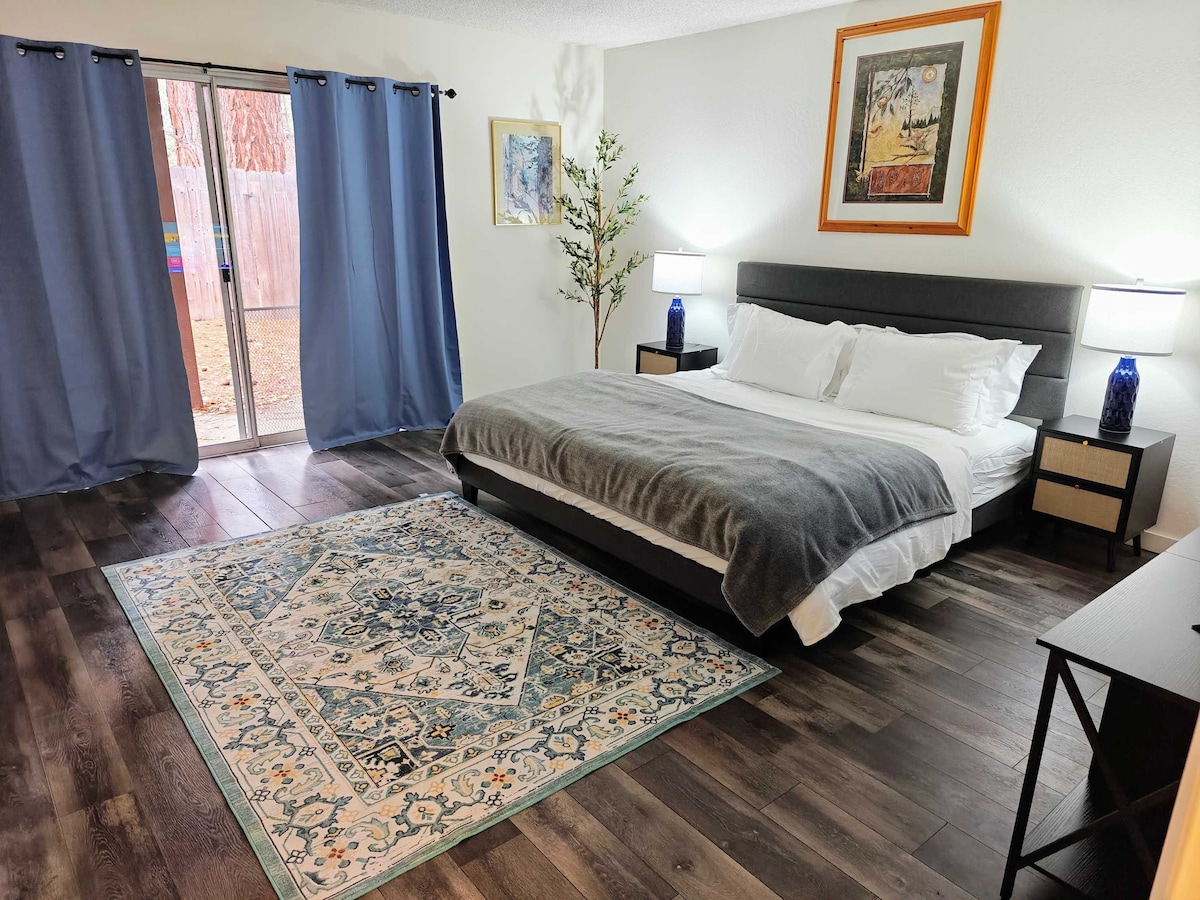 Расположен среди сосен, всего в нескольких минутах ходьбы от пляжа или лыж. Эта необычная квартира предлагает гостям полный опыт Тахо в удобном месте в центре IV. Наслаждайтесь пешеходными тропами, катанием на лыжах, велосипедах или необычным гольфом в нескольких минутах ходьбы. Этот элегантно оформленный и хорошо оборудованный северный шокондо создан для пар или друзей, которые хотят испытать настоящее приключение, романтику и веселье на озере Тахо, а также насладиться спокойствием гор. Гости должны указать номер телефона