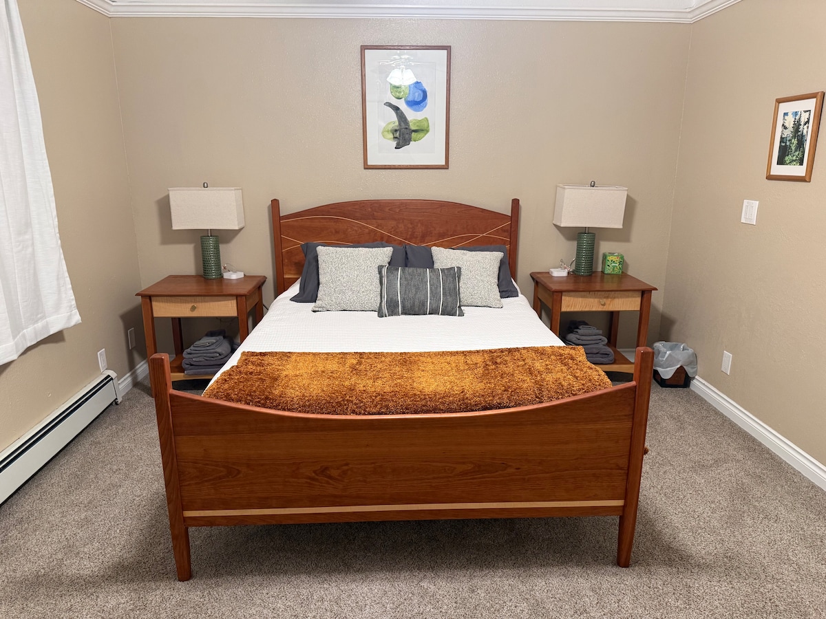 Добро пожаловать в мягкое место, чтобы приземлиться. Нам нравится принимать гостей! Жилье расположено в центре главного медрайона долины. Легко добраться до магазинов, медицины и отдыха. Озера и пешеходные тропы поблизости. Недавно отремонтированная квартира со стиральной/сушильной машиной. Открытая и просторная гостиная с телевизором, WI-FI и отдельным рабочим местом/письменным столом. Хорошо оборудованная кухня (нужно что-нибудь? Просто скажите!!), обеденная зона, местный кофе и чай. Игры и книги. Вентилятор с подогревом в ванной комнате. Удобная двуспальная кровать размера Queen size, затемняющие занавески.