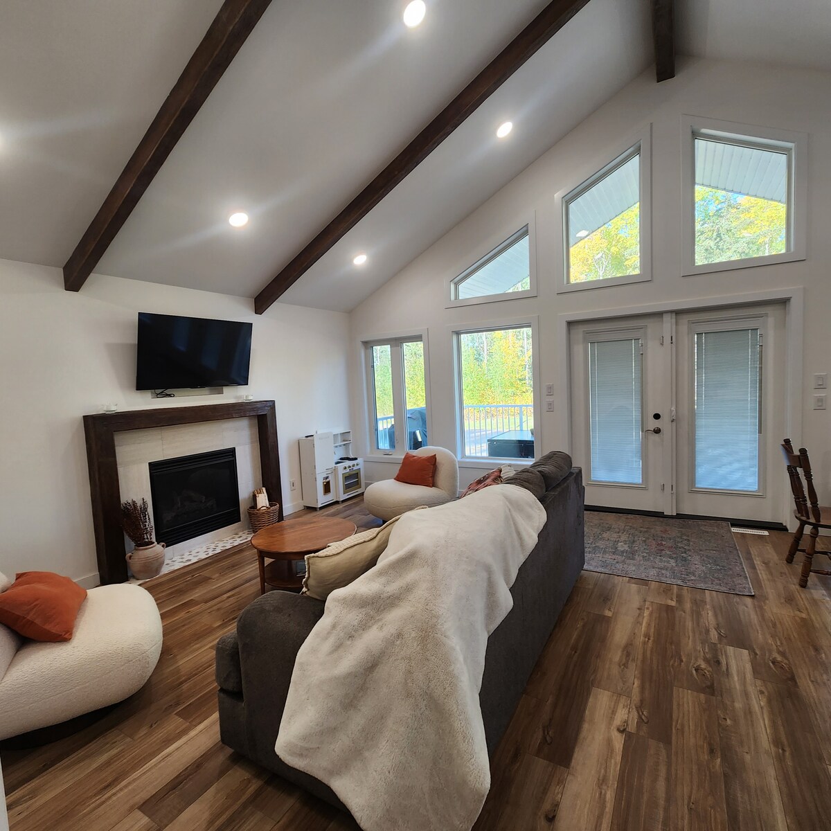 Реконструированный коттедж Lake Front с 4 спальнями/2,5 ванными комнатами идеально подходит для отдыха всей семьей в красивом парке на озере Морин. Наш уютный коттедж вмещает 10 человек (максимум 6 взрослых) и был спроектирован с учетом семей: от нашего театрального зала, детской зоны, уголка для чтения и озера всего в нескольких шагах. Барбекю на передней палубе, уютно у камина или сидеть на балконе и просто наслаждаться видом. Мы находимся рядом с главным пляжем и всего в нескольких шагах от детской площадки.