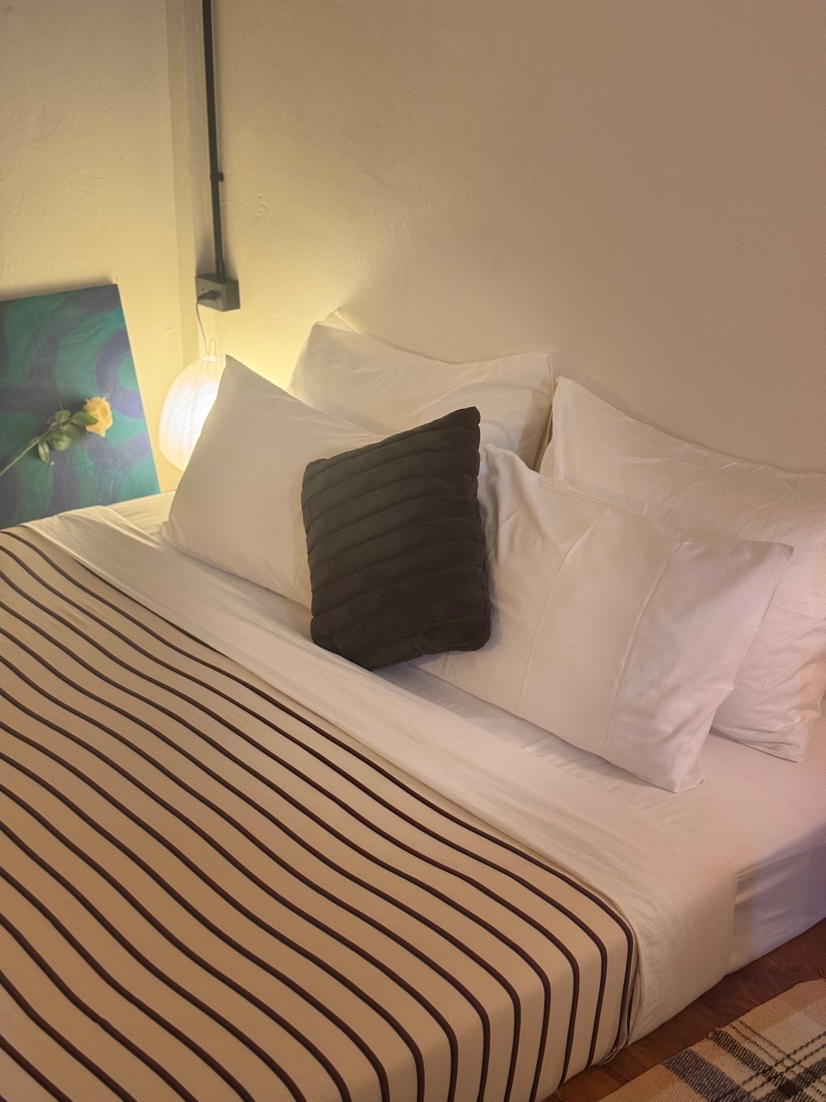 Welcome to Golden Haven, your stylish, quiet terrace house in a convenient central location. This is a warm minimalist retreat with every comfort you need. Enjoy the new, clean space, featuring a cozy leather sectional, dedicated dining, and powerful A/C. Two functional bedrooms offer premium bedding, great light control (blackout or soft light), and easy storage. Walk to everything! Your urban home base for exploring the city.