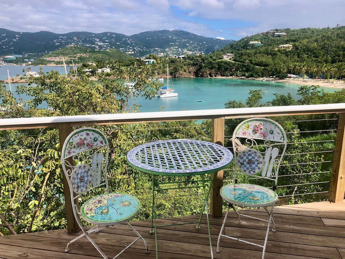 Жилье расположено на острове Уотер-Айленд и идеально подходит для пар, друзей и семей! Расположенный над Лаймстоун-Бич, вы будете недалеко от всего, включая знаменитый пляж для молодоженов, где находится один из лучших пляжных баров на USVI: Dinghy 's Beach Bar! Из окон открывается потрясающий вид на Сент-Томас, Сент-Джон и Санта-Крус на собственном крыльце, полностью оборудованная кухня и ванная комната, отдельный вход, спокойствие на главной дороге, бесплатный Wi-Fi, кондиционер и две полноразмерные кровати. Устраивайтесь поудобнее, оставайтесь на месте.