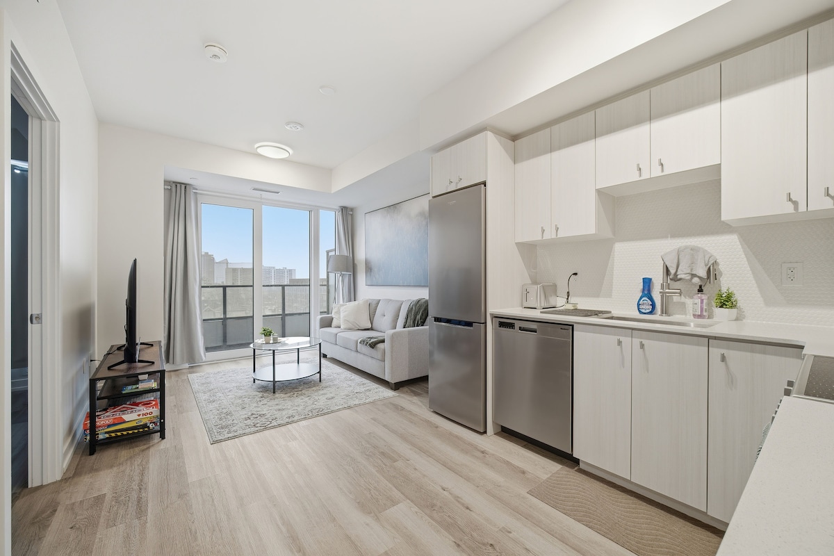Независимо от того, приезжаете ли вы по работе или отдыхаете в городе, эта современная квартира с одной спальней предлагает комфорт и удобство в центре Китченера с прекрасным видом на город. Открытая планировка включает уютную спальню, стильную ванную комнату и диван-кровать — идеально подходит для пар, небольших групп или деловых путешественников. Расслабьтесь, восстановите силы и насладитесь беззаботным отдыхом, где вы почувствуете себя как дома. Забронируйте жилье сегодня!