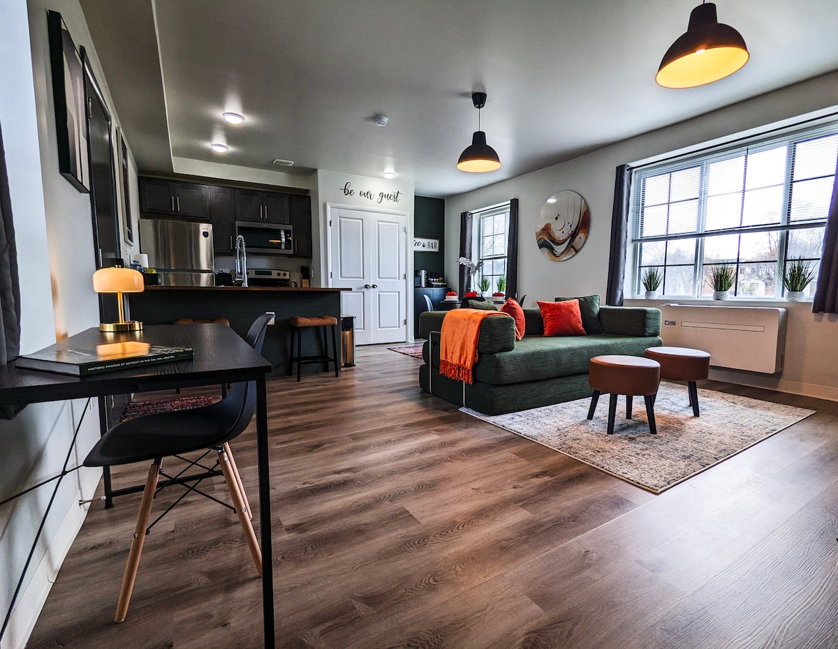 Эта уютная квартира с одной спальней в центре Детройта идеально подходит для отдыха на выходных или деловой поездки. В ней есть всё необходимое: кровать размера Queen size, диван-кровать размера King size и хорошо укомплектованная мини-кухня. Прогуляйтесь по местным кафе и культурным местам или расслабьтесь после встреч в чистом, комфортном пространстве, созданном для отдыха. Возможность размещения до 3 человек!