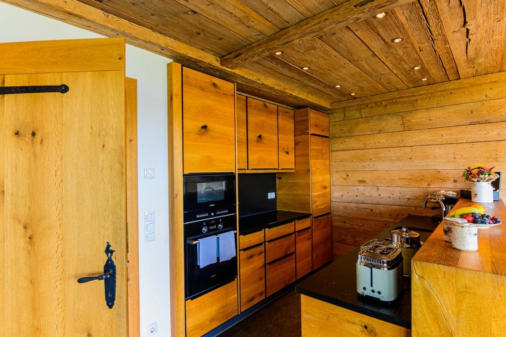 Роскошные шале площадью 200 квадратных метров обставлены с большим вниманием к деталям. Мебель, изготовленная из материалов высочайшего качества, сочетает в себе современный дизайн с альпийской атмосферой. Каждое шале имеет три уровня, две террасы и балкон и вмещает от 8 до 10 человек. С каждого этажа открывается панорамный вид на тирольские горы. В каждой из четырех спален есть отдельная ванная комната. Общая гостиная и столовая с полностью оборудованной кухней открытой планировки.