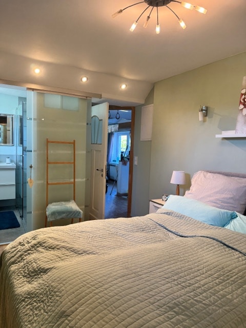 Квартира расположена на небольшой ферме, окруженной лугами, лесами и всего несколькими соседями — идеально подходит для тех, кто ищет спокойствия, природы и отдыха. В квартире могут разместиться до 4 человек, и в ней есть все необходимое для приятного проживания. У него есть собственный вход и небольшая зона отдыха прямо за входной дверью, идеально подходящая для отдыха или утреннего кофе. Для детей есть дополнительная игровая площадка.