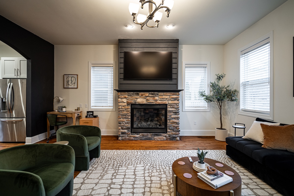 Мы только что закончили ремонт кухни и всех 3 ванных комнат в нашем уникальном трехуровневом современном доме середины века. Есть 4 спальни, предлагающие множество вариантов размещения, а также диван с выдвижной двуспальной кроватью размера queen-size. Если вы любите готовить, наша новая кухня потрясающая! К услугам гостей камин с прекрасным видом на улицу, прачечная и телевизор с кабельными каналами, видеорегистратор и потоковые приложения, такие как Netflix. Предоставляется WI-FI. Это тихий семейный район. Вечеринки запрещены, пожалуйста, будьте уважительны.