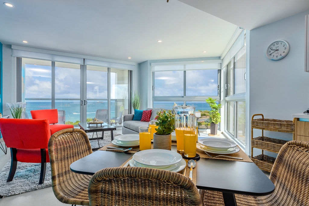 Добро пожаловать в наш дом Casa Caribbeane на берегу океана с захватывающим видом с балкона, наполненного прохладным островным бризом. Пусть бирюзовая вода, соленый воздух и шум волн завораживают вас. Просыпайтесь, занимайтесь йогой, а затем прыгайте в теплую океанскую воду или загорайте на песке острова Верде. К услугам гостей прямой доступ на пляж, быстрый WI-FI и бесплатная парковка. Прогуляйтесь везде. После поездки в Старый Сан-Хуан или тропический лес Эль-Юнке насладитесь бокалом вина на закате на балконе. Оставьте все заботы позади.
