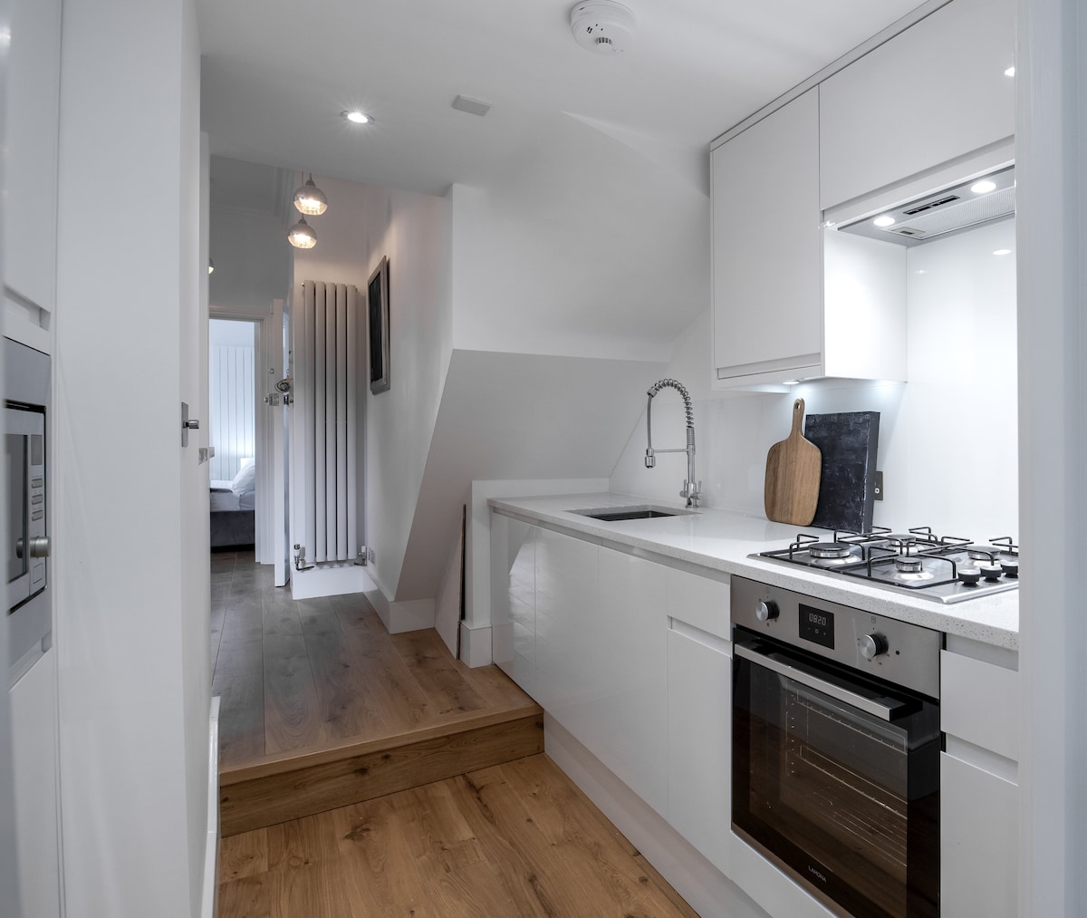 Расслабьтесь в этой стильной дизайнерской студии на верхнем этаже викторианского таунхауса в Западном Лондоне у реки Темзы с отличным транспортным сообщением. Светлое, компактное, уединенное и автономное пространство с отдельной входной дверью и кухней, отдельным душем и туалетом, рабочим столом и кроватью с высококачественным матрасом и постельным бельем. Жилье спроектировано таким образом, чтобы чувствовать себя как гостиничный номер, но с удобством кухни и солнечной террасы на крыше, выходящей на юг.