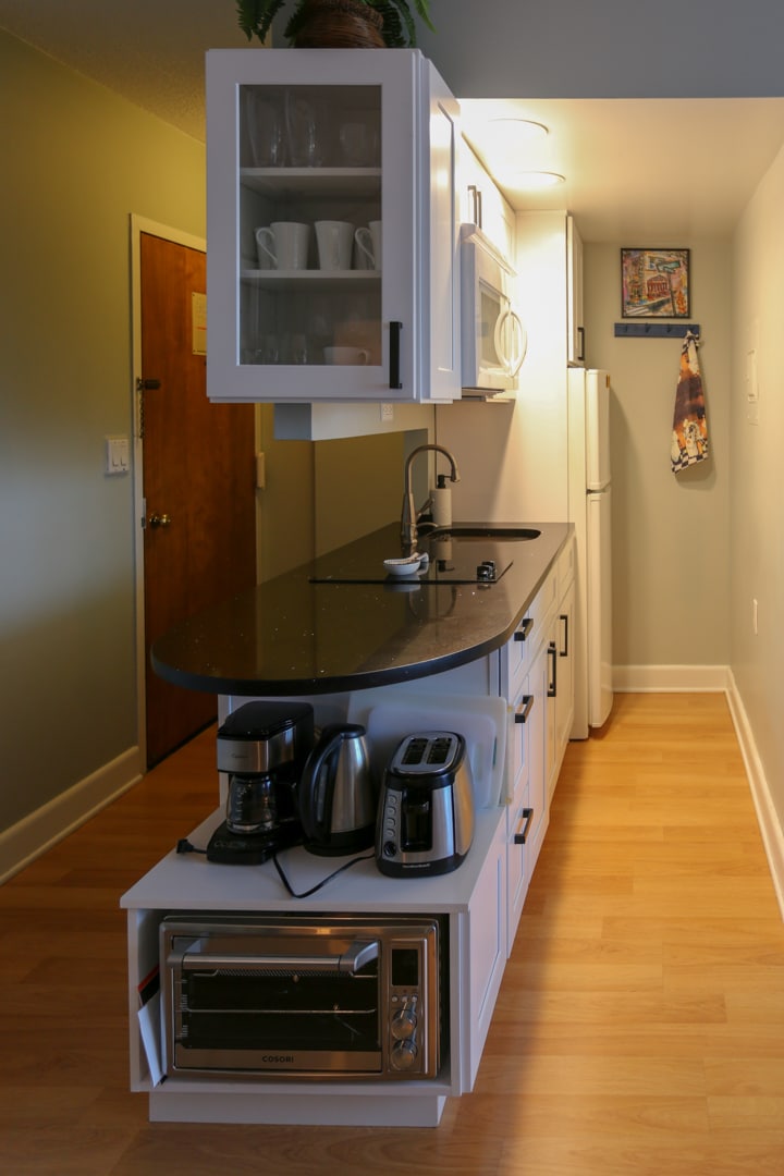 Это уютное и очаровательное жилье идеально подходит для деловых людей и/или путешественников, которые хотят исследовать красивые окрестности Гринвича. Люкс находится в нескольких минутах ходьбы от парка Померанс, живописной пешеходной тропы площадью 107 акров и различных ресторанов, что делает его идеальным местом для любителей активного отдыха и гурманов. Кухня на камбузе, двуспальная кровать размера Queen size, ванная комната с роскошными продуктами, рабочее место, стиральная машина и сушилка, раскладной диван, тренажерный зал.