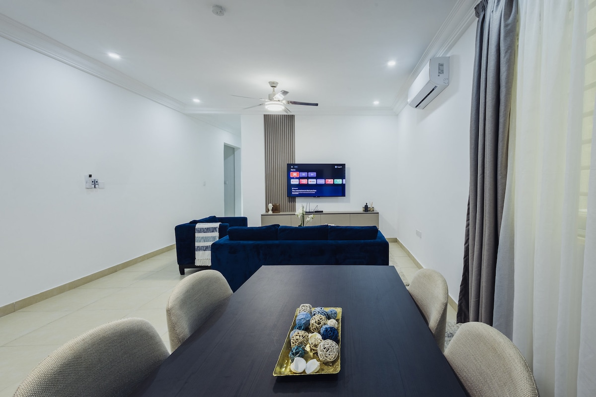 Современные семейные апартаменты с 2 спальнями и 2,5 ванными комнатами с собственным бассейном на крыше и эксклюзивным баром на крыше и грилем для семей или гостей. Квартира расположена в центре района Анаджи в Такоради. К услугам гостей полностью оборудованная кухня и обеденная зона с островом, идеально подходящим для приготовления пищи, работы или развлечений. Гостиная оборудована 75-дюймовым телевизором Smart TV, Netflix, Wi-Fi, рабочим столом и звуковой панелью для вашего развлечения.