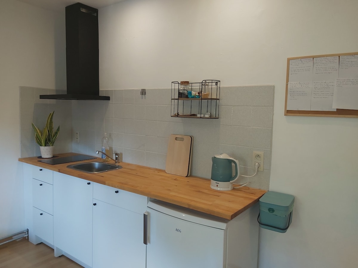 Роскошно меблированная студия с парковкой, в 5 минутах ходьбы от бульвара, Нолленбос, пляжа и ресторанов. Отдельный вход и терраса, удобная кровать, прекрасная просторная ванная комната, мини-кухня для самостоятельного приготовления завтрака и обеда. Студия очень хорошо изолирована, имеет подогрев пола и охлаждение пола в исключительно жаркие дни. Прекрасное тихое место, чтобы отдохнуть, покататься на велосипеде, прогуляться или просто почитать хорошую книгу. Проживание с домашними животными не допускается.