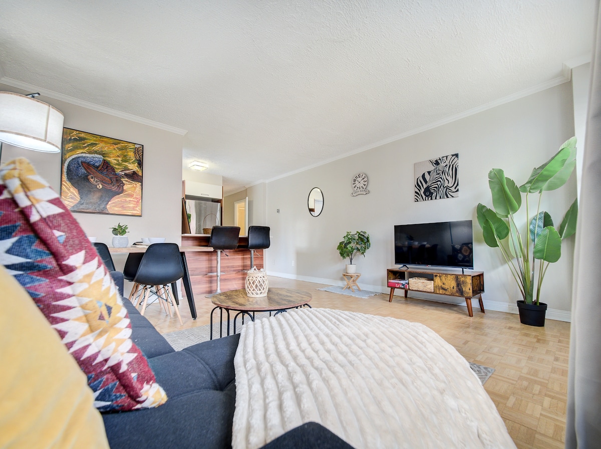 Комфортабельная и просторная квартира с 3 спальнями, высокоскоростным Wi-Fi, телевизором Smart TV, полностью оборудованной кухней, отдельным рабочим местом и просторными жилыми зонами. Эта квартира, расположенная в нескольких шагах от продуктового магазина, идеально подходит для семей, специалистов и гостей, останавливающихся на длительный срок, которым нужны удобство и пространство в Монреале.