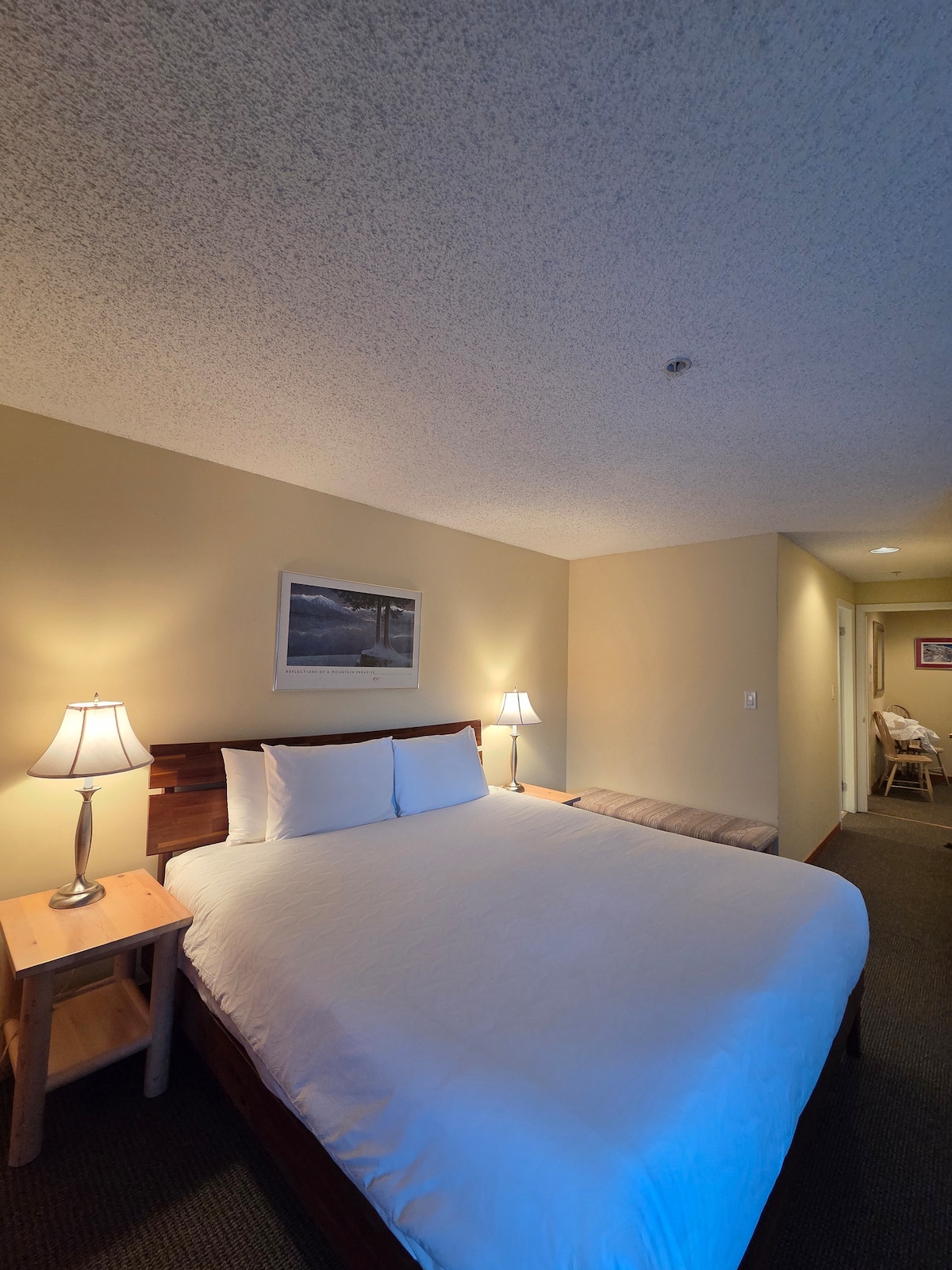 Наше жилье с 1 спальней, расположенное в тихом конце Уистлер-Виллидж, предлагает идеальное сочетание комфорта и удобства. Выйдите на улицу, чтобы найти полноразмерный продуктовый магазин, магазин спиртных напитков, Blenz Coffee и различные магазины и рестораны. Оставайтесь уютными у нашего камина и просторной гостиной. Наслаждайтесь 50-дюймовым QLED-телевизором, кабелем Telux, Apple TV, SportsNet, TSN и PrimeTV! Всего в нескольких минутах ходьбы от главных гондолов Уистлера и обслуживается зимой на бесплатном автобусе-шаттле у нашего здания.