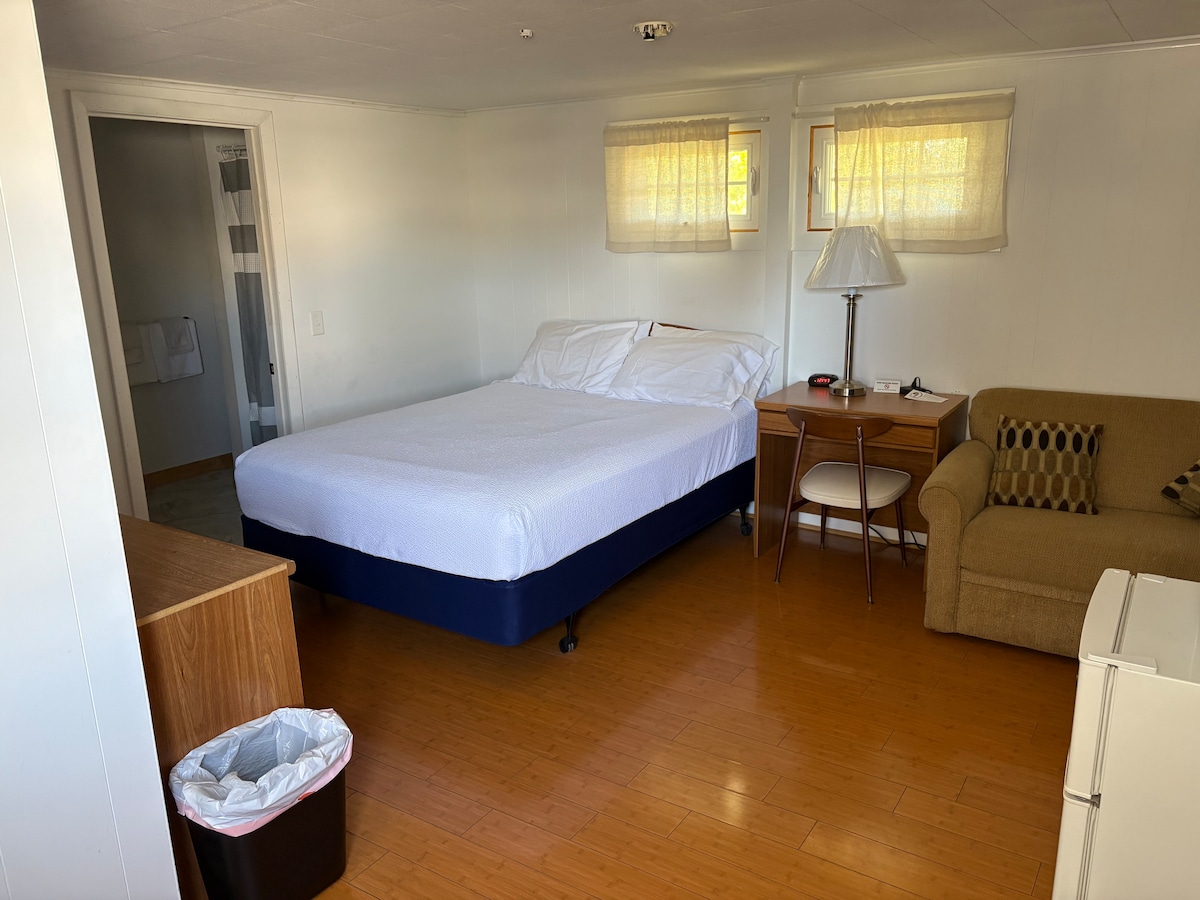 Forest Floor Hideaway: A stylish, renovated Queen bed retreat in the White Mountains. Perfect for couples or solo travelers, this room features a private entrance for a seamless, stair-free stay. Work or stream with high-speed fiber internet and a Smart TV. Includes a mini-fridge, microwave, coffee. Enjoy The Inn & More’s pool, fire pits, and private trail to the Saco River. Located near North Conway. Clean, quiet, and modern—your ultimate mountain basecamp!