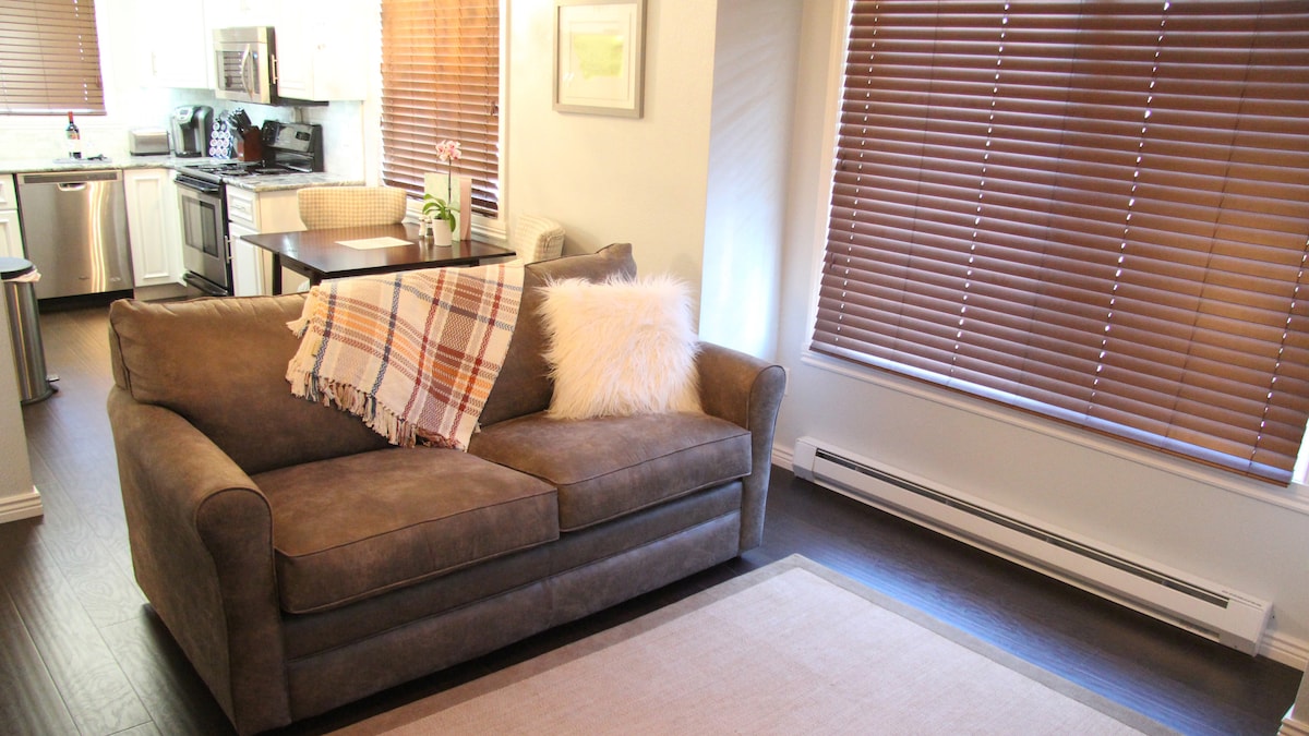 Современный, элитный стиль (New Yorker), 1 спальня, 1 ванная комната, кондоминиум прямо в центре Уайтфиша. В спальне установлена кровать размера «king-size». Диван-кровать (полноразмерный надувной матрас поверх обычного матраса для дополнительного комфорта) в гостиной позволяет кондоминиуму вместить 4 человека. Гранитные столешницы, плиточный пол с подогревом в ванной комнате, смарт-телевизоры (включая Netflix) в спальне и гостиной. Оконный кондиционер летом. Бесплатный Wi-Fi.