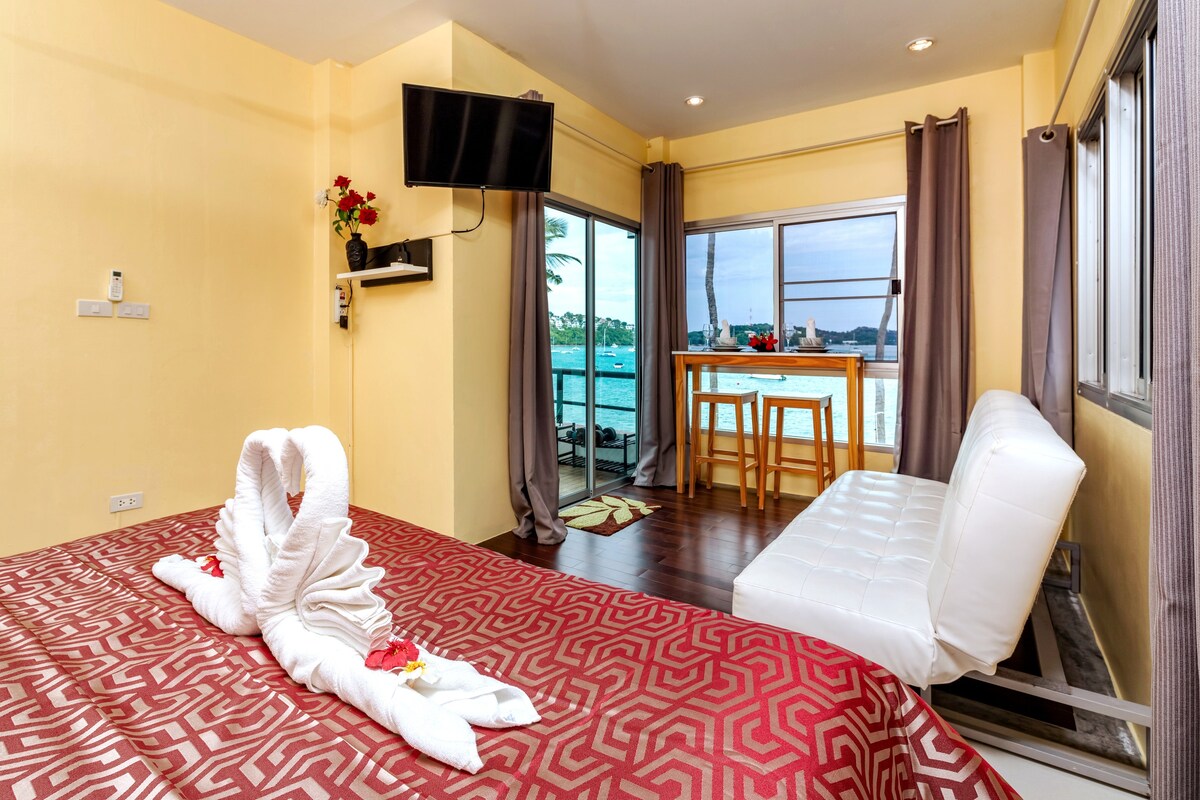 Из студии открывается потрясающий вид на море, что позволяет засыпать под успокаивающий шум волн и просыпаться под захватывающие дух восходы солнца. Эта студия, расположенная в тихом заливе Ао Йон, одном из нескольких круглогодичных пляжей Пхукета, предлагает спокойный отдых без ущерба для удобства. Наслаждайтесь легким доступом к барам, ресторанам и магазинам, все в пешей доступности, обеспечивая расслабляющее, но доступное пребывание.