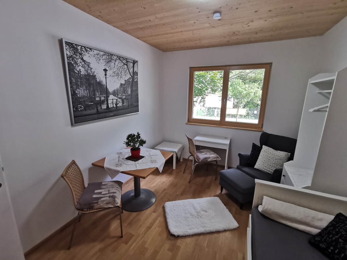Очень красивый и стильный дом с 2 спальнями недалеко от аэропорта и всего в 15-20 минутах езды на машине от центра Вены. Совсем рядом с Веной, Бургенландом, аэропортом, учебным центром CAE, нефтехимическим заводом, Borealis или OMV. Полностью оборудованная кухня, ванная комната с душем и современная гостиная с телевизором и 2 спальнями. Рядом есть небольшой супермаркет и хорошие рестораны. Короткий путь на велосипеде или пешком позволяет быстро добраться до Вены.