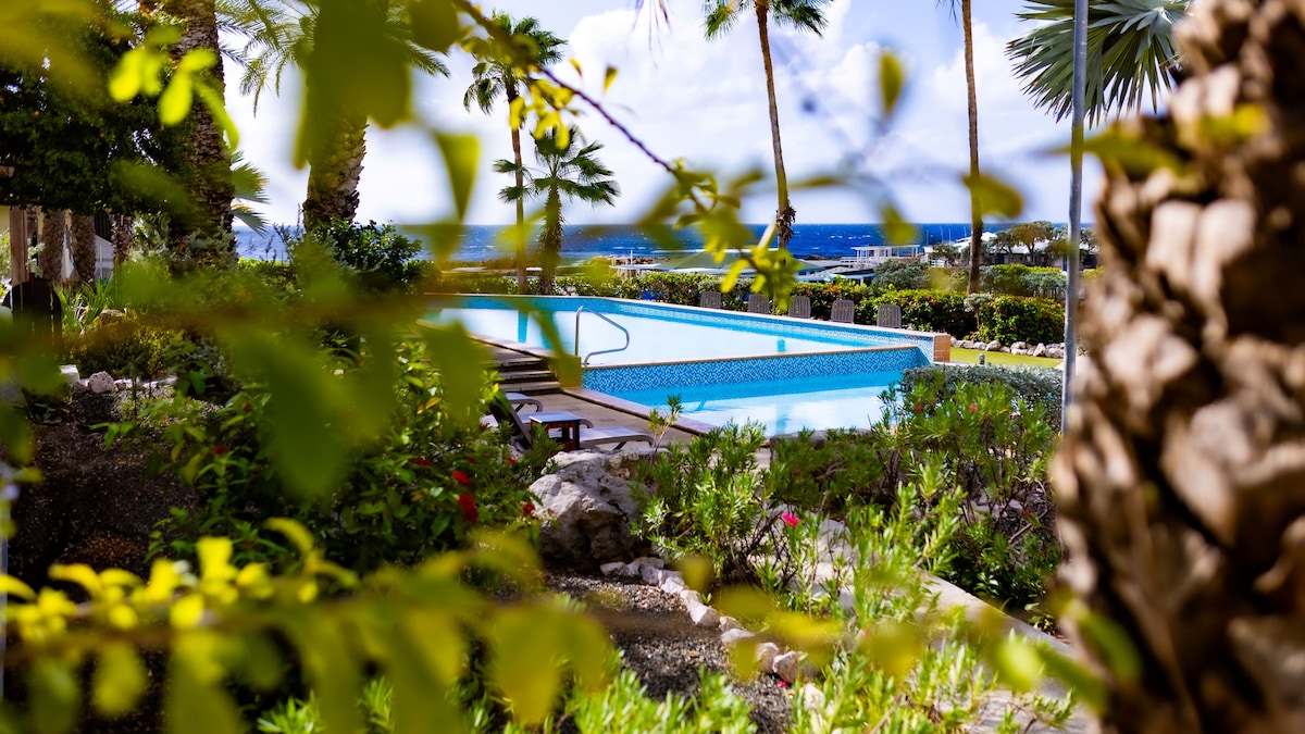 Просыпайтесь под звуки моря и заканчивайте свой день золотым карибским закатом — все это с вашей собственной террасы с видом на океан. Эти просторные апартаменты с 3 спальнями и 3,5 ванными комнатами на улице Penstraat предлагают идеальное сочетание спокойствия и удобства: Отдохните в этом великолепном и спокойном жилье. Частный пляж в красивом маленьком заливе, бассейн в тропическом саду, уединение на просторной террасе с великолепным видом, в нескольких минутах ходьбы от очень хороших ресторанов и центра города