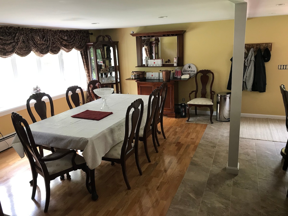 БОЛЬШАЯ квартира на первом этаже с собственным входом. В главной спальне:. Половина ванной. Двуспальная кровать. Полноразмерный диван-кровать. Телевизор/Netflix. Уютная газовая отопительная плита. Стол/стул. Водоохладитель. Кофе/чай Кухня включает в себя. Раковина. Большой холодильник. Микроволновая печь. Индукционные плиты. Тостер Гостиная. Диван-кровать размера «queen-size» . 2 Реклайнерс. 50" ТВ Прачечная Полная ванная комната Торговая площадь в 2 милях вниз по дороге и всего в 5 минутах езды до I-95 или Rt.1 и всего в 20 минутах езды до Бостона или Салема.