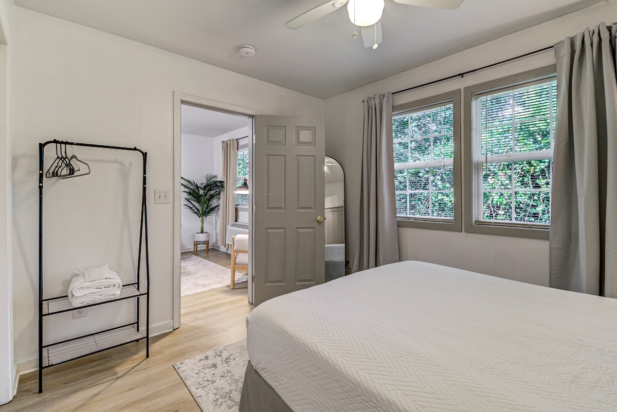 Расслабьтесь и почувствуйте себя как дома в этой тихой и светлой гаражной квартире среди вершин деревьев. Расположена в центре города, недалеко от лучшего в Уилмингтоне - в 10 минутах езды от исторического центра города и в 15 минутах от пляжа Райтсвилл! Хорошо оборудованная с удобной двуспальной кроватью размера King size, комнатой для отдыха в просторной гостиной и полноразмерной кухней для всех ваших кулинарных потребностей! Наслаждайтесь общим задним двором, а парковка на подъездной дороге и жильем на вершине деревьев обеспечивают полное уединение. Устраивайтесь как дома!