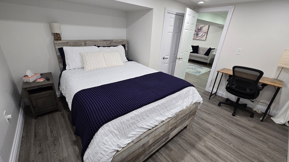 Вам нужно довольно хорошее, не разделенное чистое место для проживания ? Эта милая одна спальня, гостиная /диван-кровать, кухня, полная ванна (стиральная машина/сушилка 6 ночей + ), расположенная на втором этаже, над нашим семейным домом, готова для вас, чтобы насладиться отдыхом. В Старом Уолкервилле, в пешей доступности от ресторанов, пабов, бутиков и реки с пешеходными и велосипедными дорожками, а также летними развлечениями. В нескольких минутах езды до казино, театра Крайслера/ St. Clair Arts, до пансиона США, до железнодорожного вокзала.