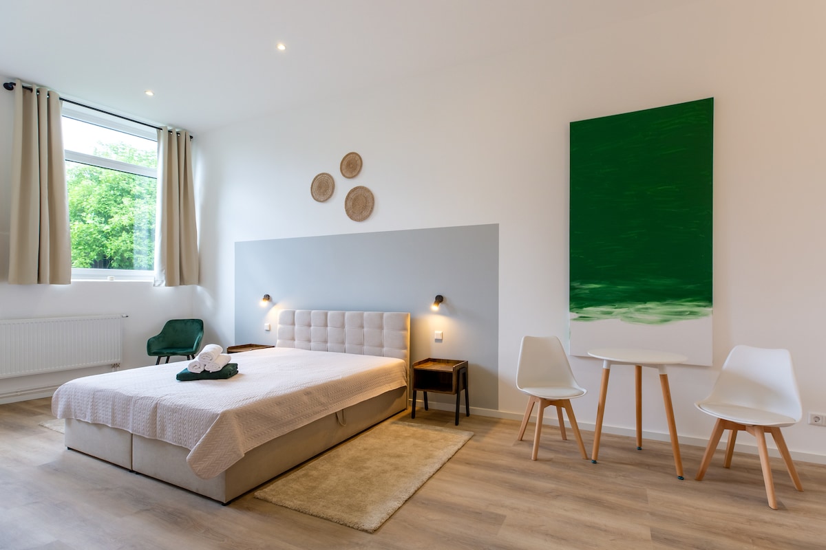 Красивая однокомнатная квартира в историческом центре города. На территории Naturheilpraxis мы отремонтировали небольшой полудеревянный дом. Пятиминутная прогулка на природе. Расставание с повседневной жизнью, приход отдохнуть и найти себя, расслабление для тела и ума. Упражнения - это жизнь, поход, поездка на велосипеде или прогулка, просто наслаждайтесь. Массаж и процедуры можно заказать индивидуально на практике. Хорошие домашние животные приветствуются. Ждем вас!
