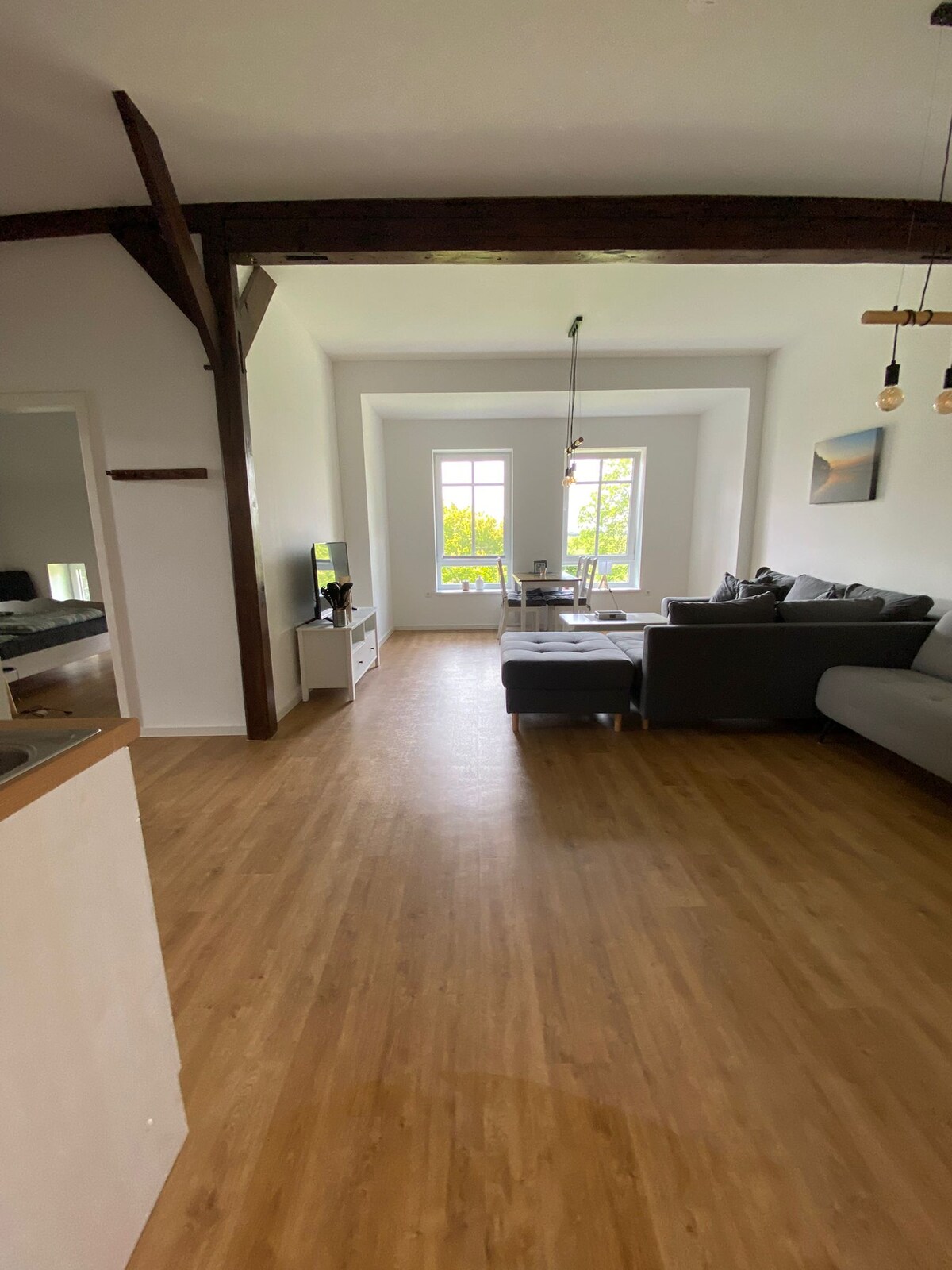Если вы ищете что-то особенное, вы попали в нужное место: красивая, абсолютно тихая, большая (около 100 кв. м) квартира-чердак, чтобы расслабиться и чувствовать себя хорошо для индивидуалистов, отсева, людей, нуждающихся в отдыхе или подчеркнутых в историческом здании. Замечательное расположение плотины на старой внутренней плотине в тупике, но все же прямо в центре деревни. Четкий вид из окон над берегом на фарватер. Посмотрите на горшки и побалуйте себя. Торговые центры находятся в нескольких минутах ходьбы.