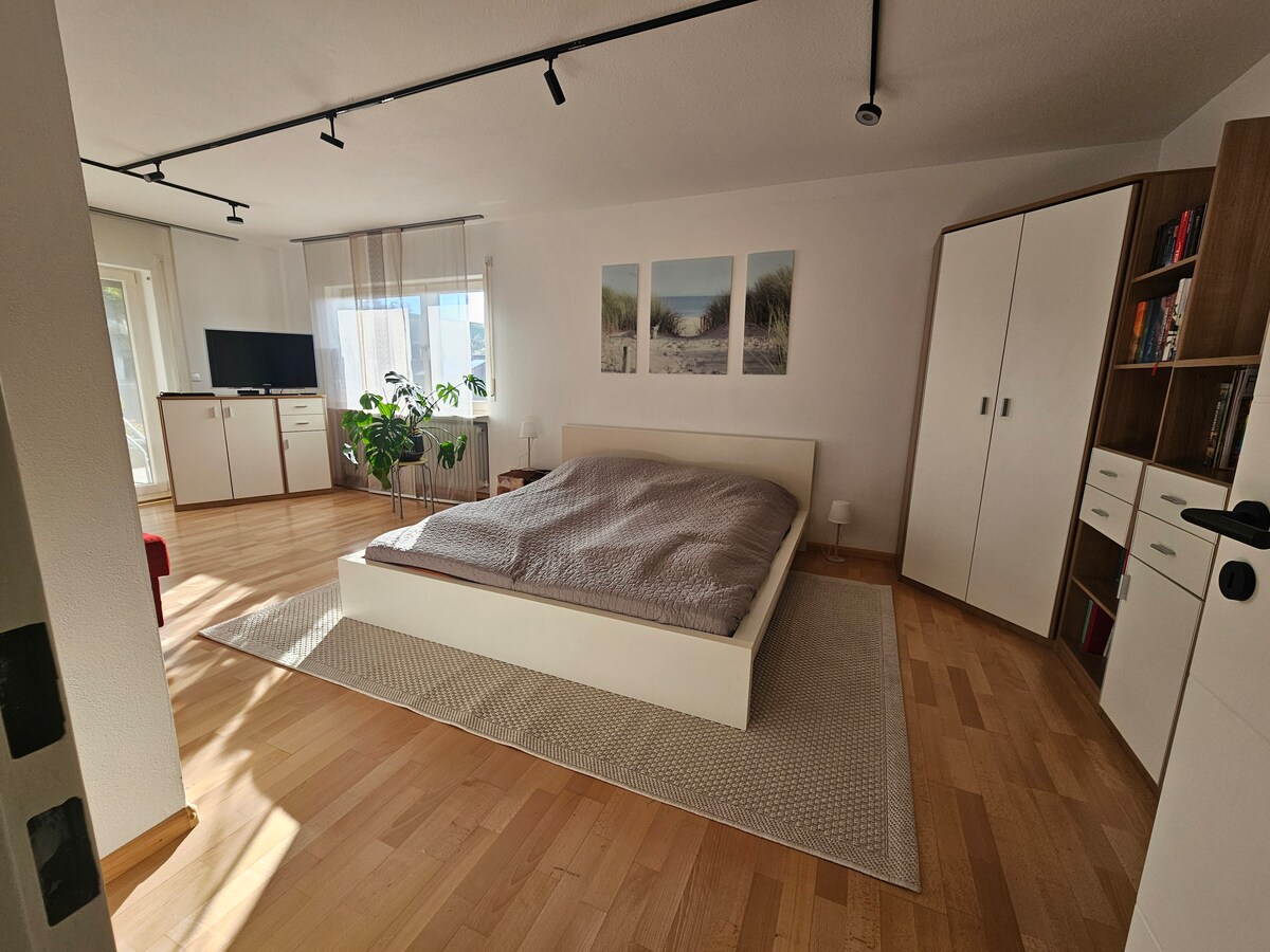 Изысканная, тихая, центральная 1-комнатная квартира (3 минуты ходьбы по городу) с панорамной обстановкой. Вид на Шварцвальд, Вогезы в Эльзасе/Францию, на руины Старого города и замок Стауфена. Первый этаж с выходом на террасу из отдельного дома. Парковка на улице перед домом.