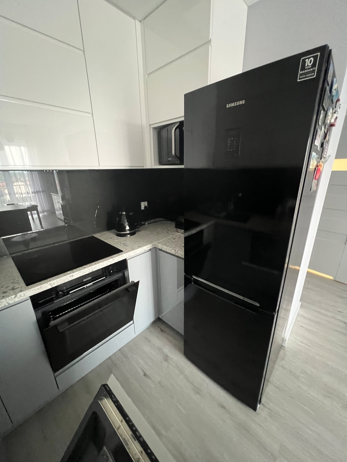 Роскошная квартира площадью 45 кв. м: — Полностью оборудованная кухня с первоклассной техникой Gorenje и Samsung. — Гостиная с удобным диваном, современным телевизором и потрясающим видом на город. - Красивая ванная комната с ванной и душем. — Стильная спальня с большой комфортной кроватью.