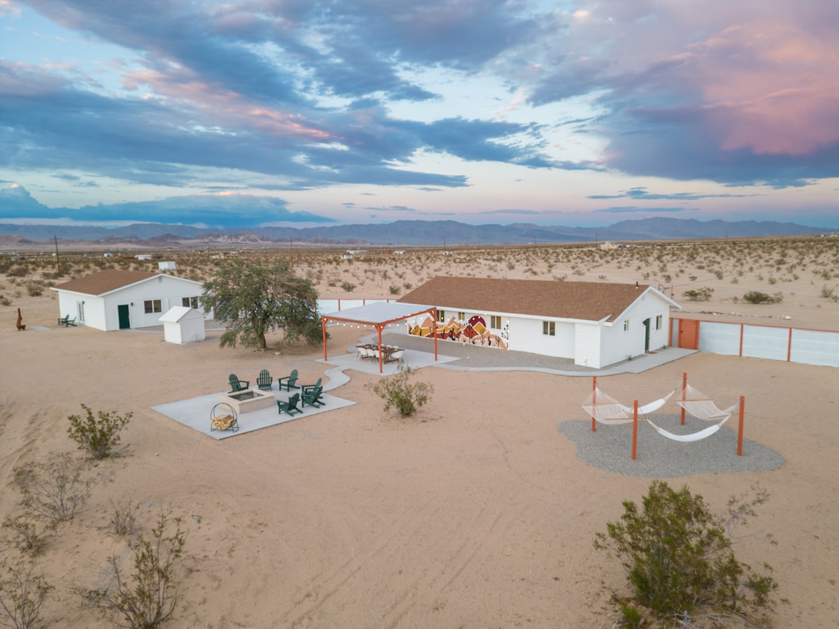Enjoy Wonder Valley in this charming, original homestead on 5 private acres overlooking the beauty of the desert and Joshua Tree National Park. Secluded enough to enjoy the desert scenery and just 10 minutes away from the Joshua Tree National Park North Entrance. 7 Minutes to 29 Palms with a thriving scene of bars, shopping, necessities & restaurants Our sprawling 5 acres feature a cowboy pool & deck, outdoor dining and seating areas, hammock, game area, Stargazing Deck, & endless views!