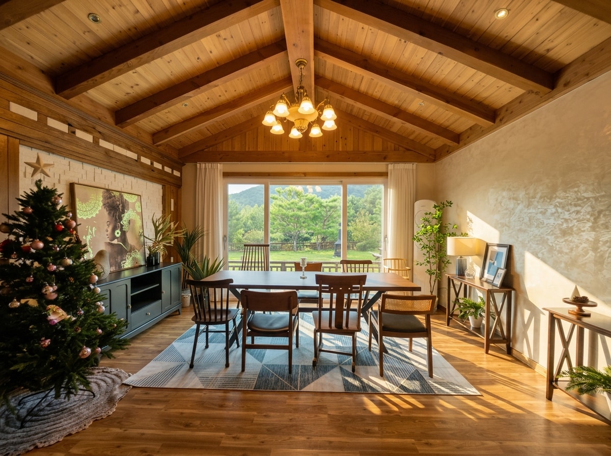 Это частное жилье в пышном лесу, полностью удаленное от городского шума, где слышен только шум ветра и виден только свет звезд. Погрузитесь в глубокое расслабление благодаря идеально разделенным тематическим зонам на каждом этаже. ✨ 1-й этаж: индустриальный бар и кухня (зона общения) Первый этаж с грубоватой, но уютной индустриальной атмосферой превращается в частный бар только для вас. Камин: бокал вина у горящего огня. Обеденная зона: насладитесь отличным ужином и задушевной беседой за стильным большим столом. ✨ 2-й этаж: уютная зона отдыха (место для отдыха) Второй этаж предназначен для полноценного отдыха. Особо выделяются открытая планировка студии и практичное разделение пространства. Разделение пространства: спальня, ванная комната и отдельная гардеробная разделены, чтобы вы могли аккуратно разместить свой багаж и комфортно проживать. Частная терраса: открыв дверь, вы увидите закат, который окрашивает лес в красный цвет, и звездный свет, заливающий ночное небо.