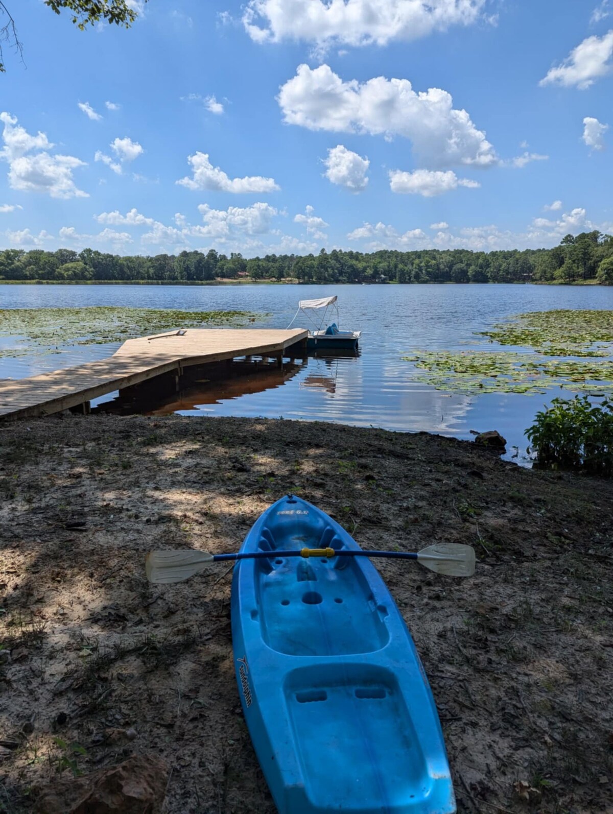 Деревянный домик на берегу озера + спальные места для 4+ человек + байдарки + костровище