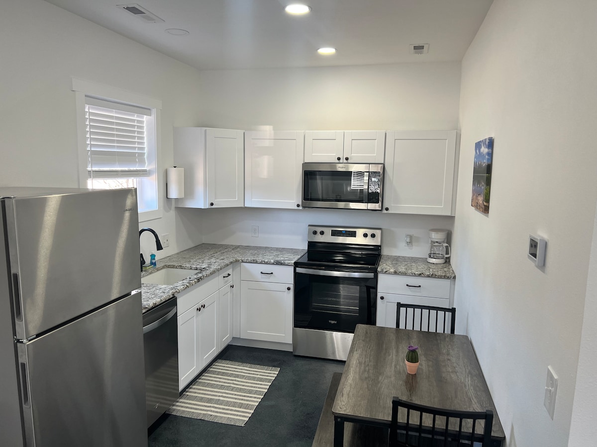 Чистая, уютная и комфортабельная частная квартира на цокольном этаже с великолепным видом на Пайкс-Пик и Военно-воздушную академию. Большая спальня с удобной двуспальной кроватью размера Queen size, недавно обновленной ванной комнатой с туалетом, мини-кухней (обратите внимание, что без духовки или варочной поверхности) и большой гостиной с телевизором Roku, камином и местом для сна и отдыха. Жилье расположено в тихом районе примерно в 2 милях от Академии военно-воздушных сил, с легким доступом к шоссе для развлечений как в Денвере, так и в Колорадо-Спрингс.