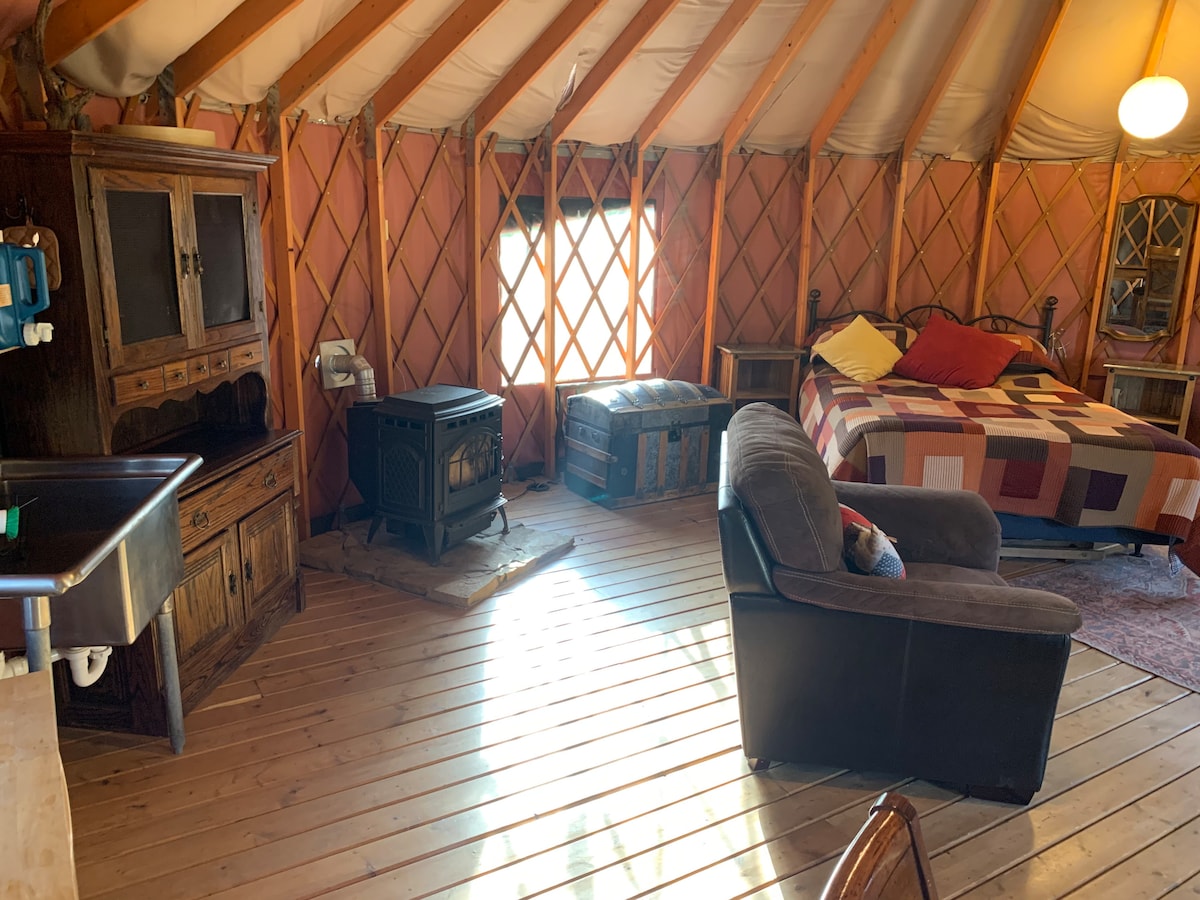 Добро пожаловать в ваш идеальный отдых! Почувствуйте очарование нашей уютной юрты, расположенной на 35,5 частных живописных акрах. Если вы ищете страну, живущую на Великих равнинах с захватывающим 360-градусным видом, восходами солнца на востоке и потрясающими закатами над Скалистыми горами, не ищите дальше. Примите деревенский отдых на открытом воздухе. Отключите простоту автономной жизни. Забронируйте пребывание в нашей юрте и создайте незабываемые воспоминания в окружении красоты природы.