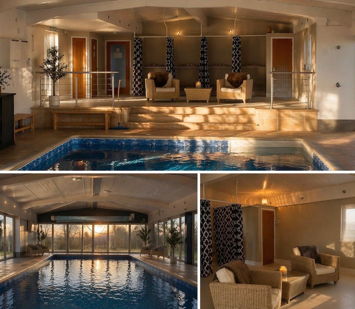Крытый бассейн с подогревом, гидромассажная ванна, сельский дом, BHX NEC