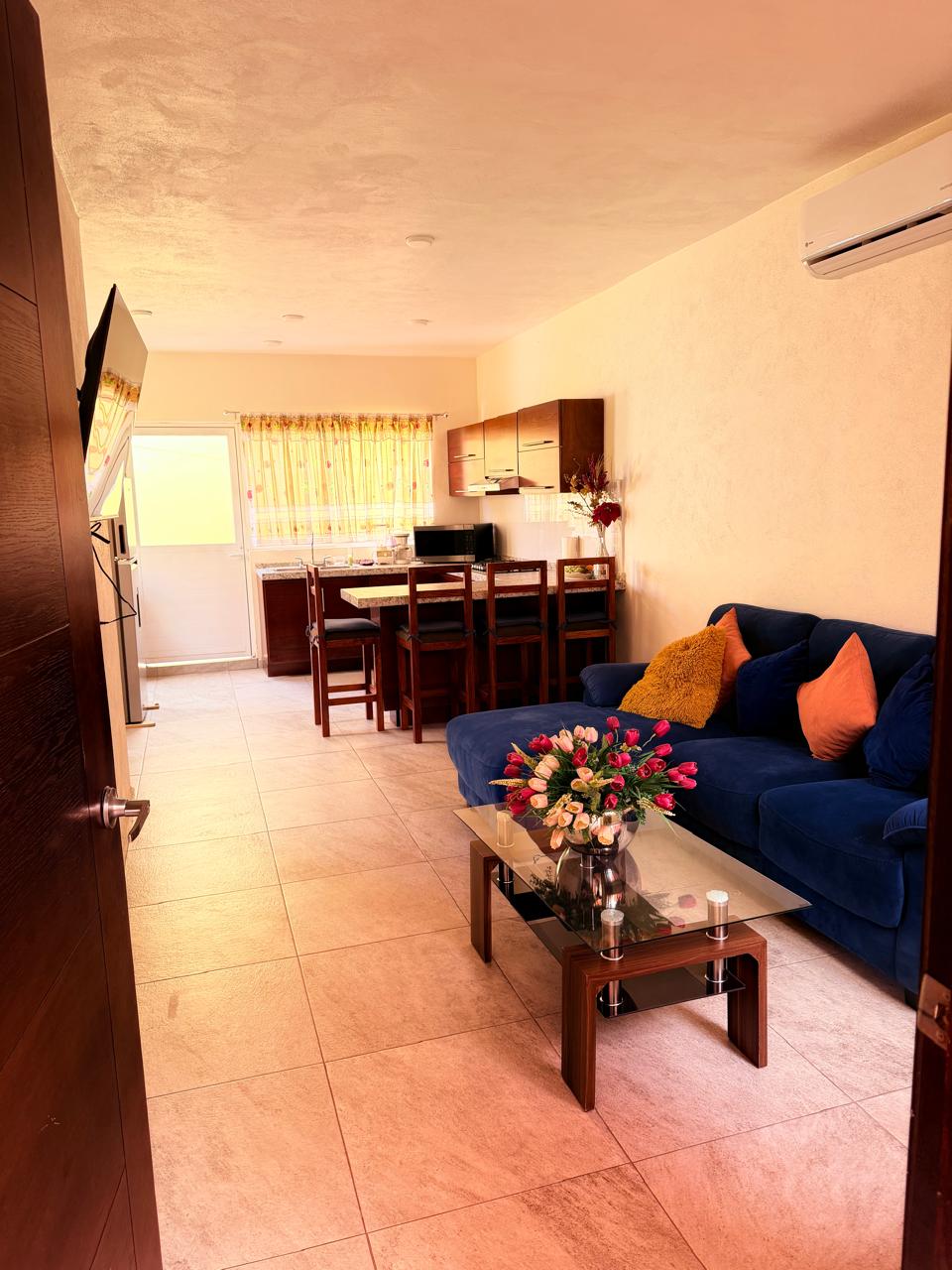 2 спальни, 1 ванная комната, гостиная, столовая, кухня со всем оборудованием, кофеварка, стиральная машина, вентиляторы, все совершенно новое и дезинфицированное, парковка, наблюдение. До лучших пляжей Наярита можно легко добраться по автомагистрали, всего в нескольких минутах ходьбы от нее с изысканной и непревзойденной кухней. С НЕТЕРПЕНИЕМ ЖДЕМ ВСТРЕЧИ С вами!!!