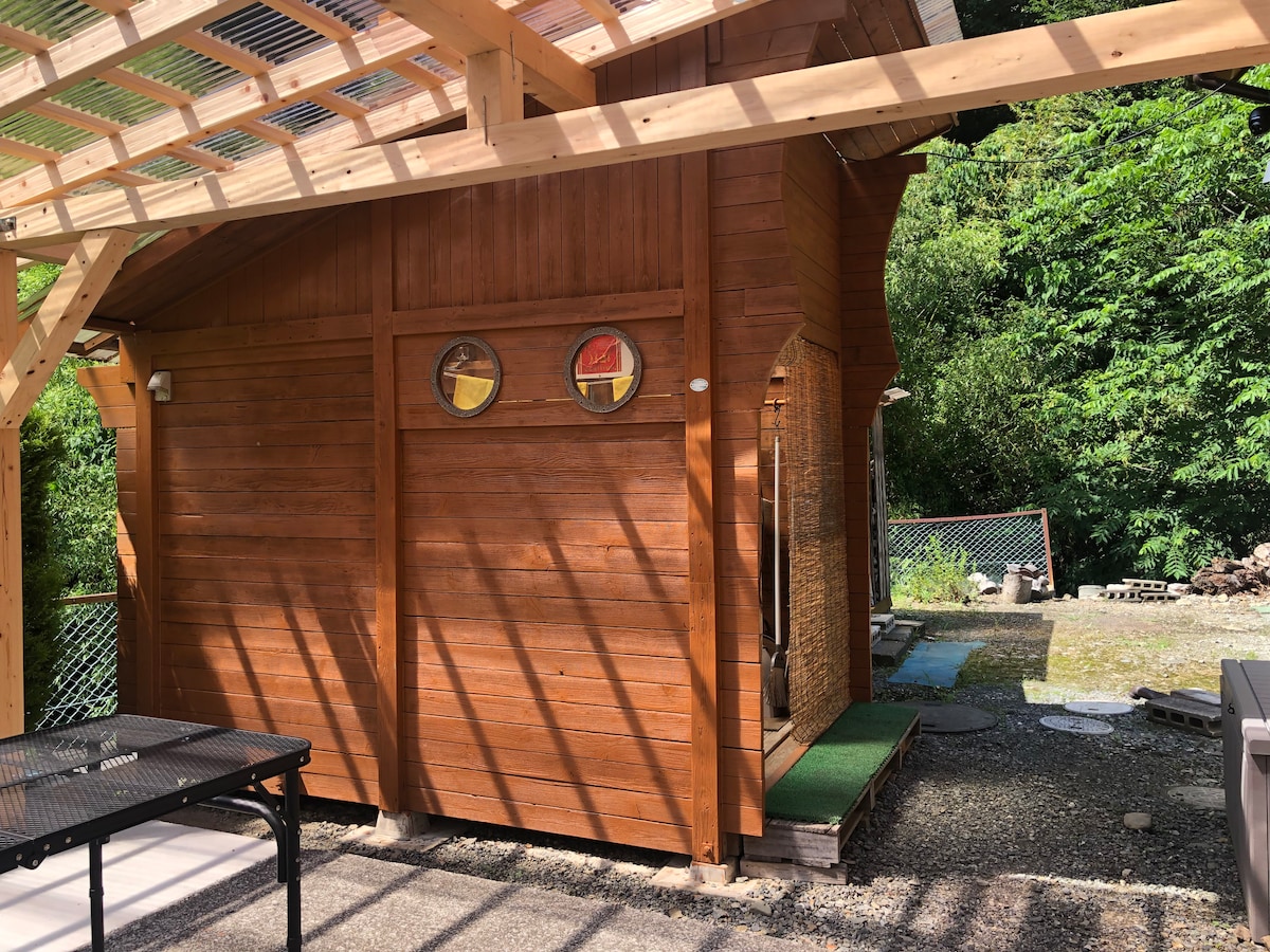 Рафтинг в Нагатори 10 минут на машине/Парк с батутами 1 минута пешком/Барбекю с навесом/Дровяная печь/Бревенчатый дом/8 человек