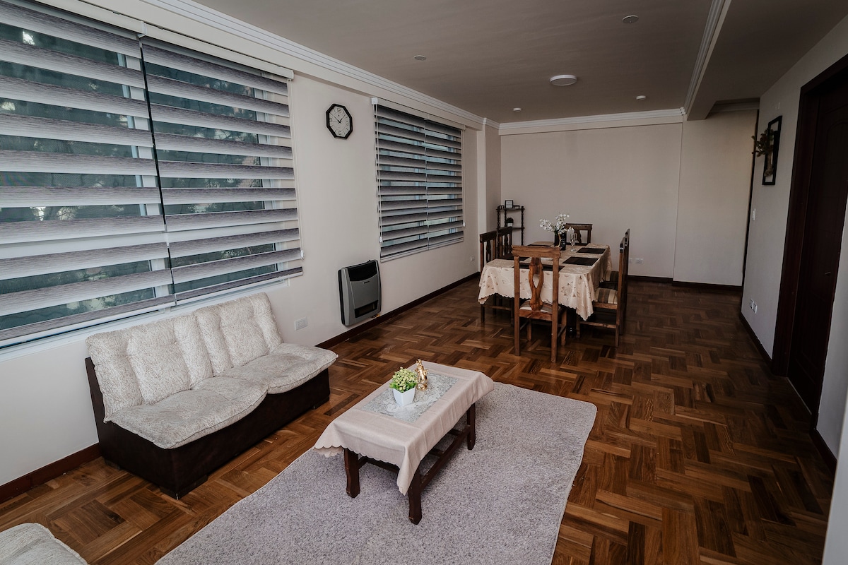 Откройте для себя эту красивую и элегантную квартиру в тихом районе Ла-Паса с практическим доступом к супермаркетам, банкам, площадям и ресторанам. Теплое место, которое предлагает вам комфорт и удобство для незабываемого отдыха. ¡Сделайте бронирование и наслаждайтесь этим уютным жильем!