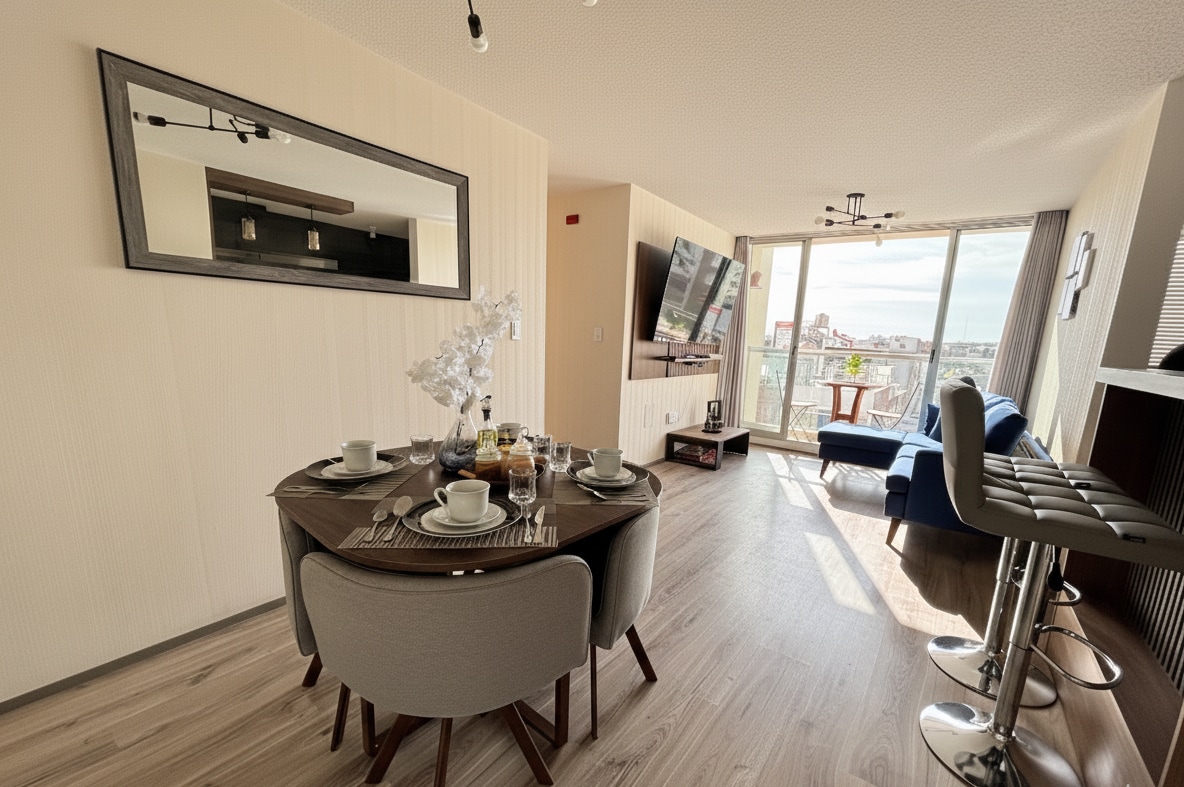 Эта уютная квартира с одной спальней идеально подходит для любителей приключений и мечтателей. Насладитесь оборудованной кухней, удобным рабочим пространством и очаровательной гостиной, украшенной уникальными деталями путешествия. Выйдите на балкон, чтобы покурить, и насладитесь захватывающим видом на город. Ваше следующее приключение начинается здесь всего в нескольких минутах ходьбы от аэропорта и в нескольких минутах ходьбы от торговых центров! Бронируйте прямо сейчас для незабываемого отдыха!
