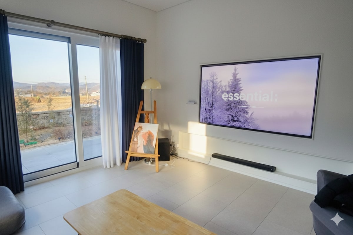 * Мы создали пространство, где вы можете создать более уютную и прохладную атмосферу с помощью складной двери пагоды во дворе. Мы приобрели новый тип роторной плиты FASECO, и вы можете добавить кемпинговую плиту FASECO. Подарите отличные воспоминания с семьей и друзьями в Янпхёне, который просторный и красивый ~ ~ ^ ^ * Парк Вивальди находится в 40 минутах езды, а поблизости находятся туристический район Йонмунсан, Думулмеори, парк Шиджа, долина Санаса, 5-дневный рынок Янпхён, водные виды спорта и т. д. Hanaro Mart находится в 3 минутах езды (1,7 км), а Lotte Mart — в 10 минутах езды (4,1 км). * 2 телевизора: гостиная (65-дюймовый, Google, Netflix, YouTube и т. д.), спальня (телевизор KT Genie + Smart TV). * Установлен очиститель воды (холодная вода, горячая вода, очиститель воды). * Полностью автоматическая кофемашина (Philips) и кофейные зерна, смешанный кофе. * Бесплатный газ из 2 бутанов. * Палатка-гостиная (плата за установку и аренду палатки 10 000 KRW). * Доставка еды доступна в городе Янпхён.