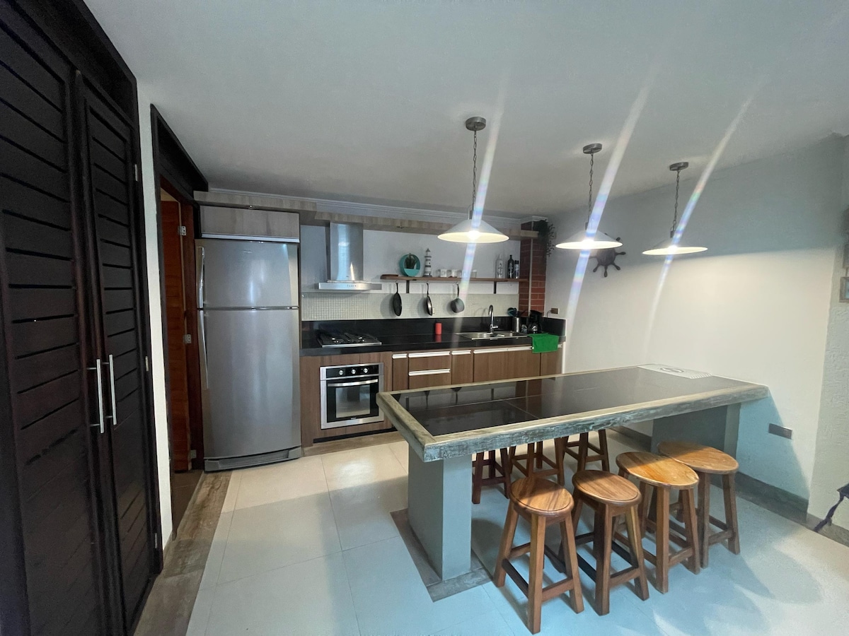 Ваш идеальный отдых в Тукакасе ждет вас! 🌞🏖️ Расслабьтесь в отпускном доме вместимостью до 6 человек, где веселье и отдых идут рука об руку. 😎 В этом месте есть все! 43-дюймовый телевизор и оборудованная кухня. Две ванные комнаты и две уютные спальни с кроватями размера Queen size, 32-дюймовый телевизор, удобный диван-кровать и даже гамак для отдыха. Бассейн с горкой у крытого каната, прямой выход на пляж, зеленые зоны и грили. Весело и будьте уверены! 🏝️
