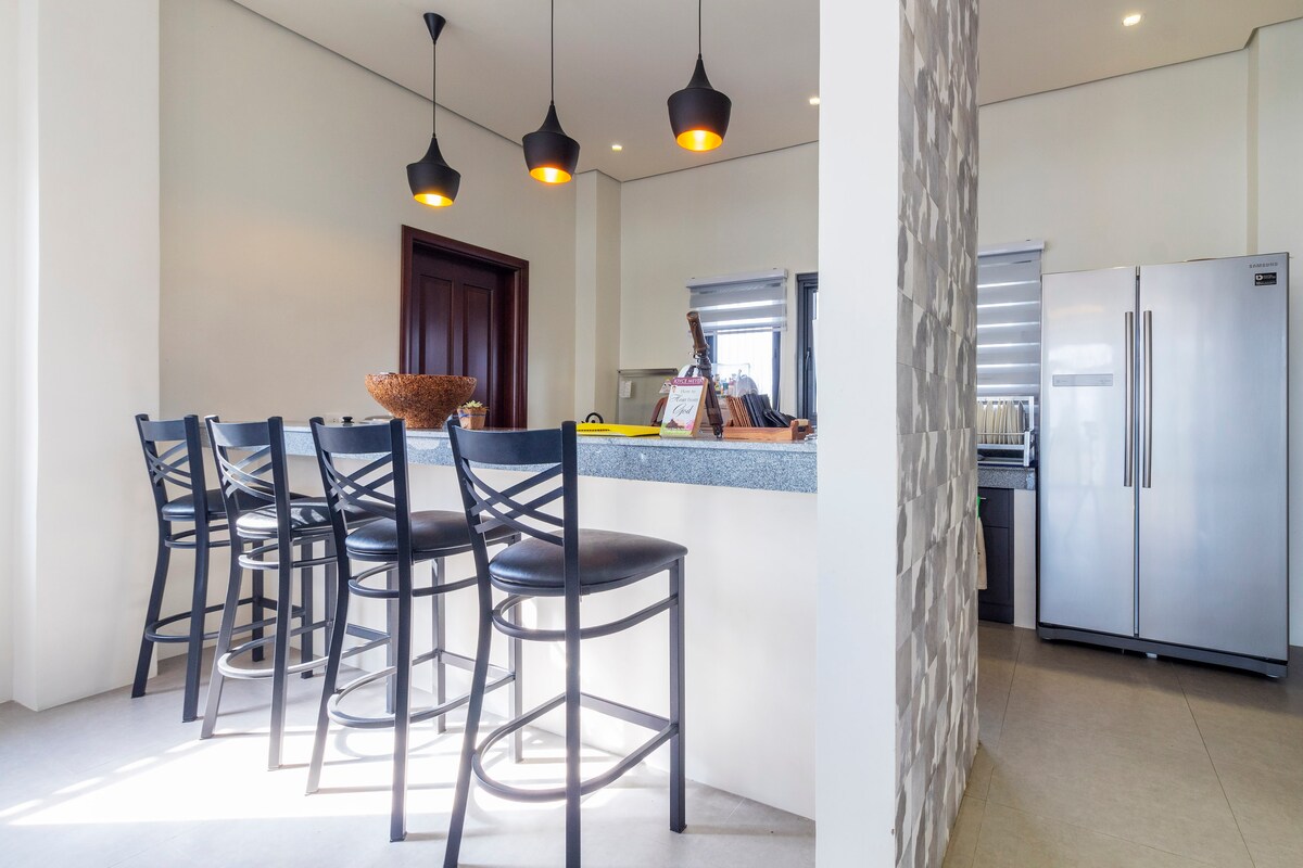 Наслаждайтесь отдыхом на собственном курорте с красивым семейным бассейном и частным баром. Пойте караоке с друзьями в патио у бассейна. В элегантном современном доме с 2 спальнями и 2 ванными комнатами есть полностью оборудованная кухня и комфортабельное жилое пространство. Netflix и расслабьтесь с надежным Wi-Fi во всех помещениях. В спальнях есть кровати размера Queen size, кондиционер и душ с горячей/холодной водой с обновленной системой давления воды. Примечание:полный персонал, проживающий на территории.