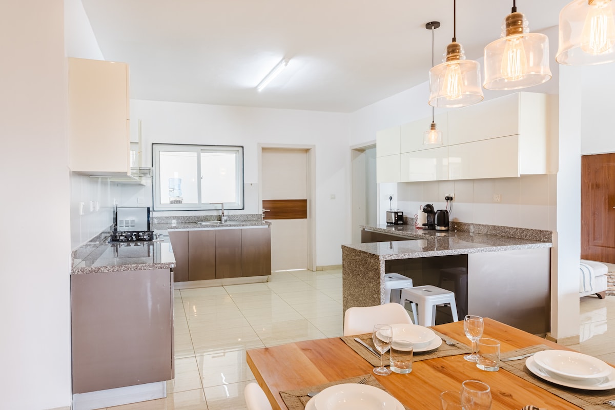 К услугам гостей собственный балкон с видом на город, полностью оборудованная кухня с кофемашиной и обеденная зона. К услугам гостей бассейн, тренажерный зал и бесплатная парковка. Мы предоставляем высокоскоростной Wi-Fi, горячий душ с бесплатными туалетными принадлежностями и свежее постельное белье. Этот современный дом, идеально расположенный в Килимани, сочетает в себе роскошь и домашний уют.
