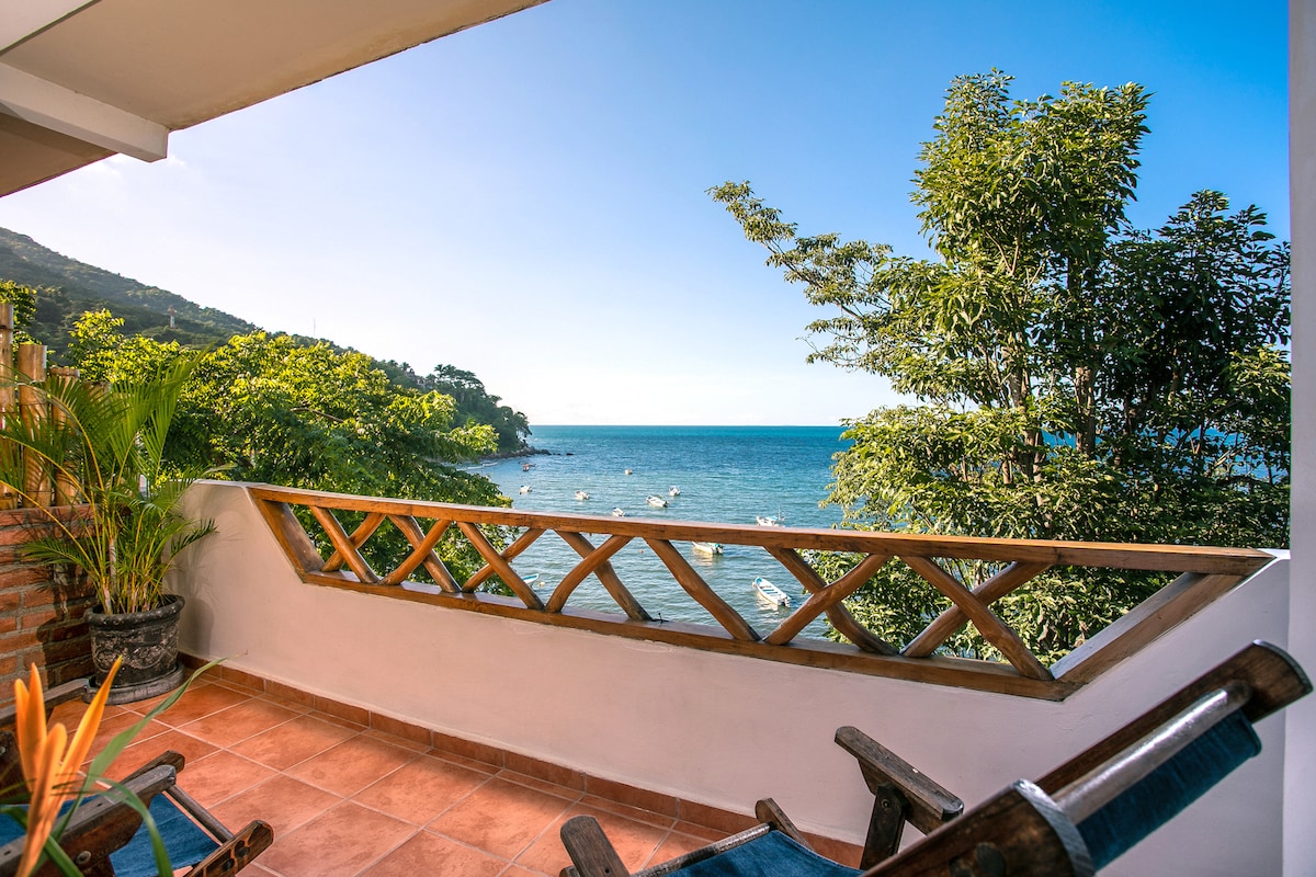 1 спальня 1 большая двуспальная кровать Кондиционер 1 ванная комната Полный балкон кухни, где вы можете оценить прекрасный вид на океан Кондиционер Yelapa - это убежище для отдыхающих, до которого можно добраться только на лодке. Сегодня это остается возможностью для подлинного приключенческого путешествия в красивую мексиканскую деревню. Наиболее известные своими водопадами и пляжами мощеные дорожки, фауна джунглей и причудливые рестораны и магазины еще больше добавляют очарования Елапе. Наш дом находится недалеко от города, недалеко от главной дороги за старой начальной школой. У нас есть один доступ для всех домов, каждый дом имеет свою главную дверь, только коридоры разделяются, чтобы добраться до каждого из них! Мы находимся в 5 минутах от города, в 3 минутах от небольшого пляжа и в 10-15 минутах от главного пляжа. Это отличное место, так как мы спрятаны в джунглях достаточно, чтобы быть вдали от шума пуэбло, но достаточно близко ко всему, что это супер удобно. Здесь все гуляют! Или берут квадроцикл или осла. Автомобилей нет. Здесь холмисто, так что принесите свои кроссовки. У нас есть ВЫСОКОСКОРОСТНОЙ ИНТЕРНЕТ и КОНДИЦИОНЕР!