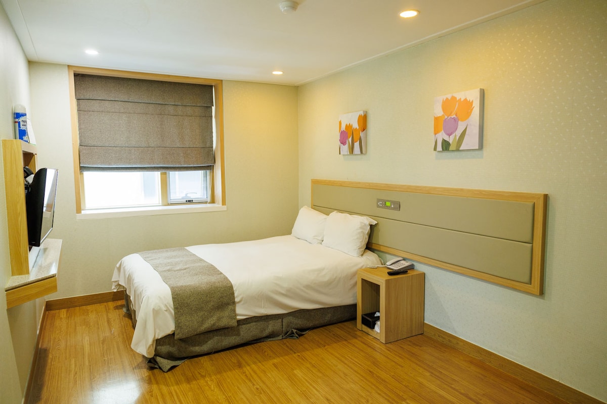 Предназначен для одноразового использования, идеально подходит для одиноких путешественников. Вместимость до 2 человек. УДОБСТВА: хрустящая чистая комната * Первоклассная мебель с кроватью Ace. * Удобства в номере: телевизор, Netflix (личный аккаунт), Wi-Fi, кондиционер, напольный обогреватель, горячая вода, стиральная машина, беспроводной пылесос, мокрый. * Кровать и ванна : постельное белье, полотенце, фен, шампунь/кондиционер/гель для душа, мыло для рук. * Кухня : микроволновая печь, холодильник, 2-этажная индукция, кастрюля/сковорода, ножницы, посуда и столовые приборы;