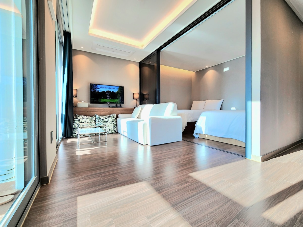 [오픈특가]신축 오션뷰 테라스 호텔 해운대 디럭스 스위트, 송정 해수욕장 5분 거리,방2